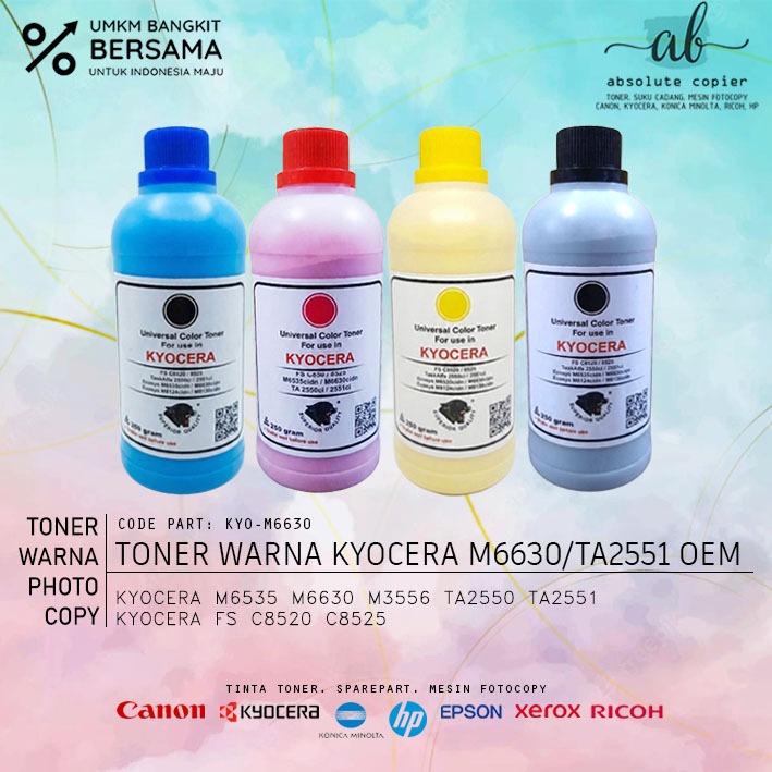 Toner Kyocera Warna M 6630 5526 6535 8124 8130 CIDN TA 2550 2551 FS-C8250 FS-C8525 Printer Portable Colour Fotocopy Original Absolutecopier 250gr