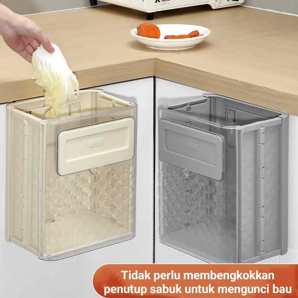 Tempat Sampah Lipat Hemat Ruang / Kotak Sampah Dapur Gantung / Wadah Sampah Gantung Trasnparan
