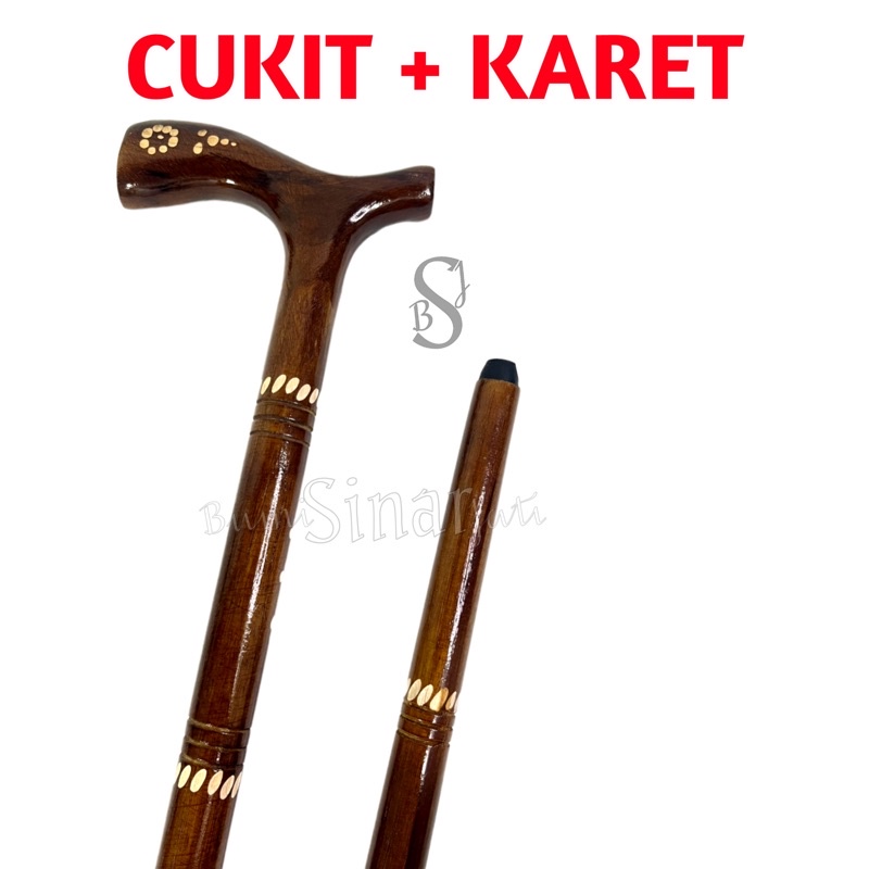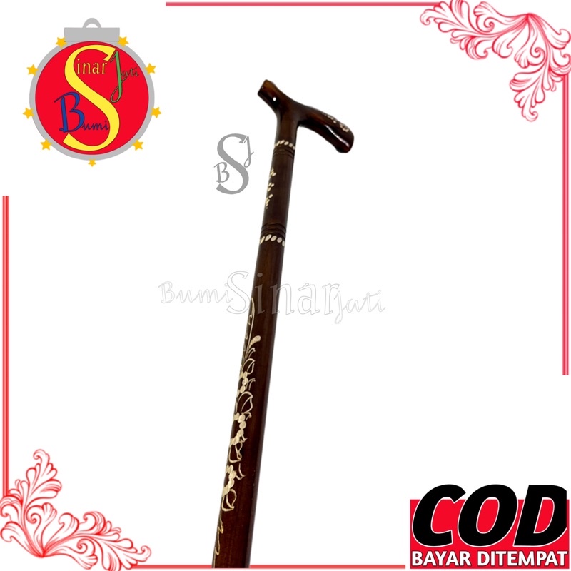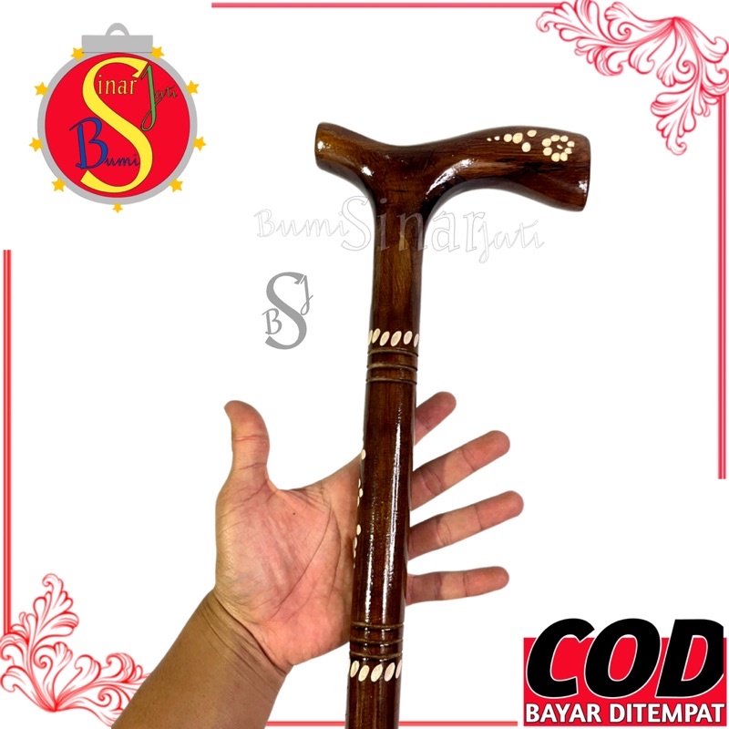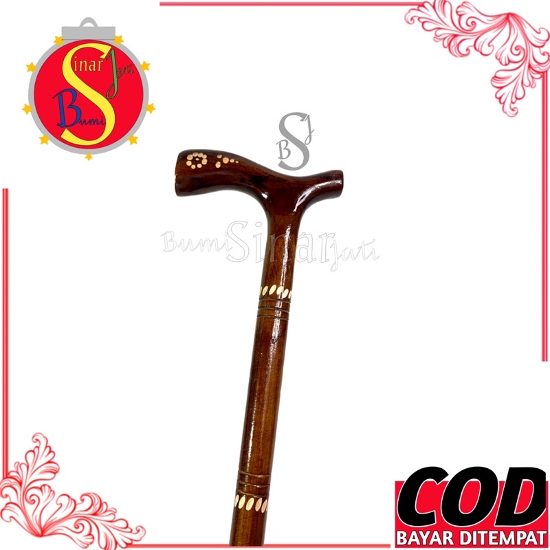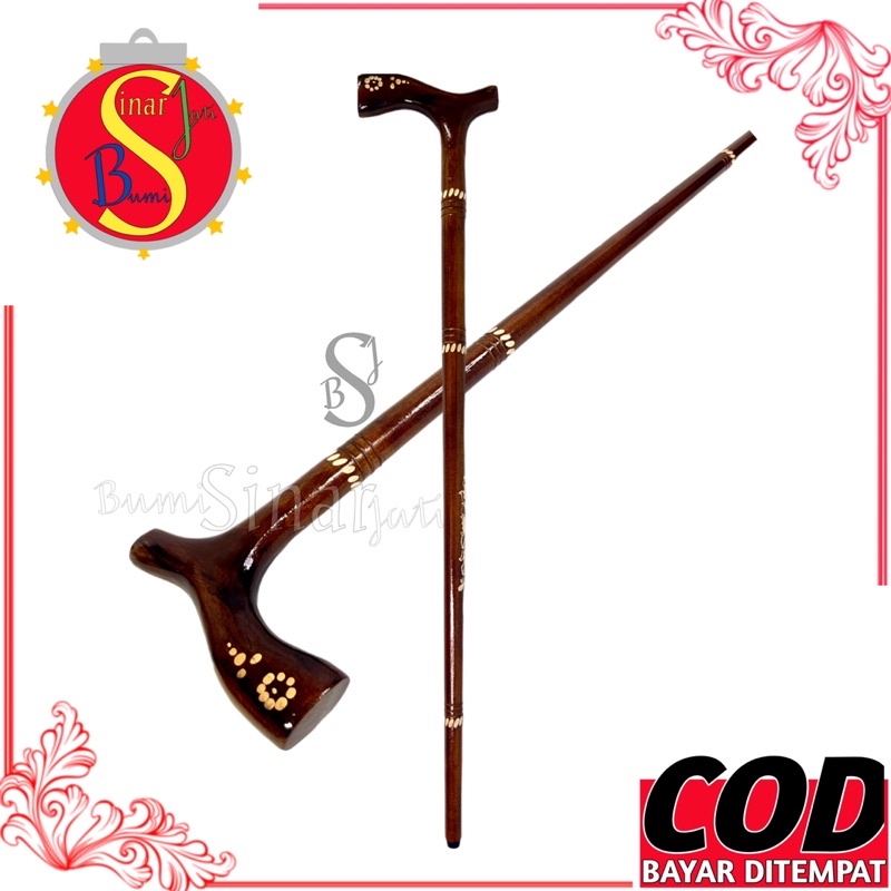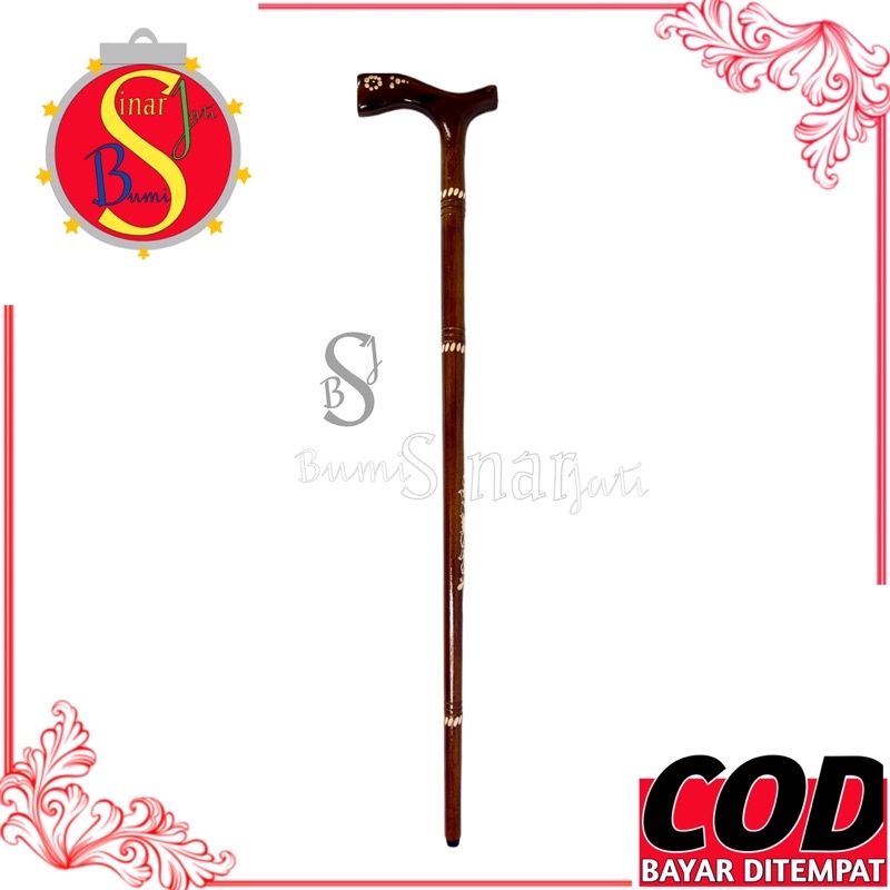 (COD) tongkat jalan kayu jati + sepatu karet anti licin / slip - tongkat orang tua - tongkat satu kaki - tongkat kayu jati model pegangan palu - tongkat lansia - tongkat ukir - tongkat kayu jati motif ukir - tongkat jalan kayu ukir - tongkat murah -teken