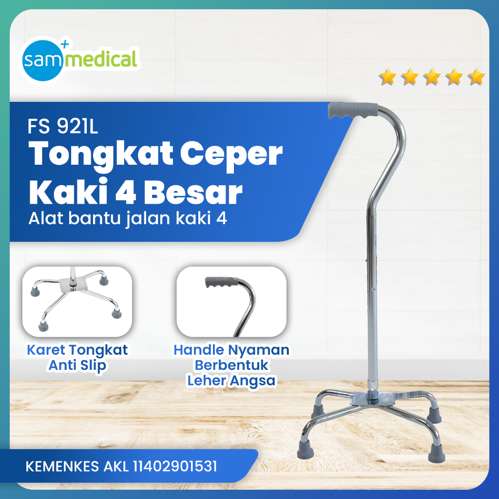 Tongkat Kaki 4 Ceper Lebar - FS 921L / Tongkat Jalan Ringan / Alat Bantu Jalan Lansia Cedera