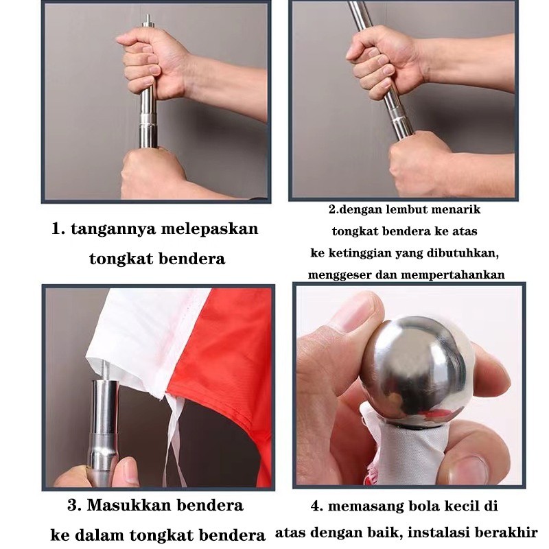 Tongkat Tiang Bendera 2meter Tiang Bendera Teleskopik Stainless Tongkat Bendera Travel Flag Pole Tiang Bendera Portable
