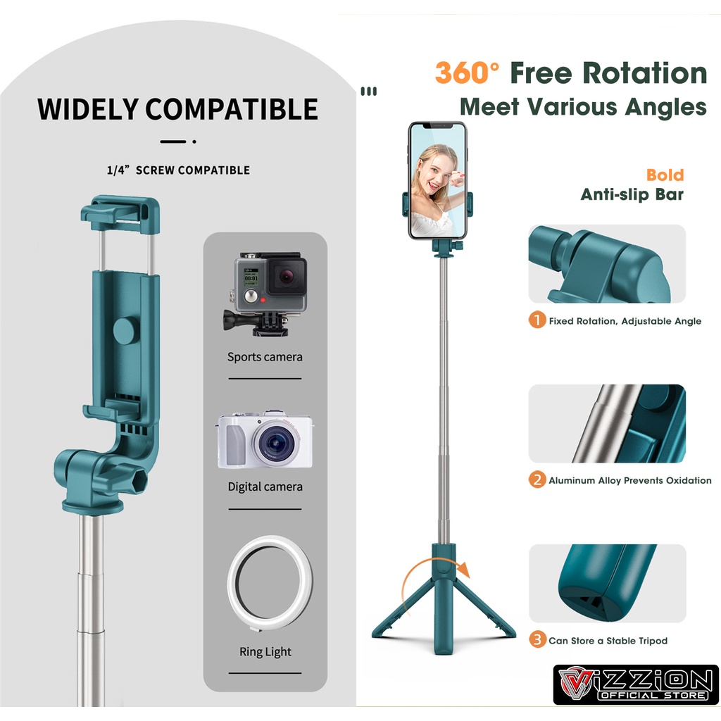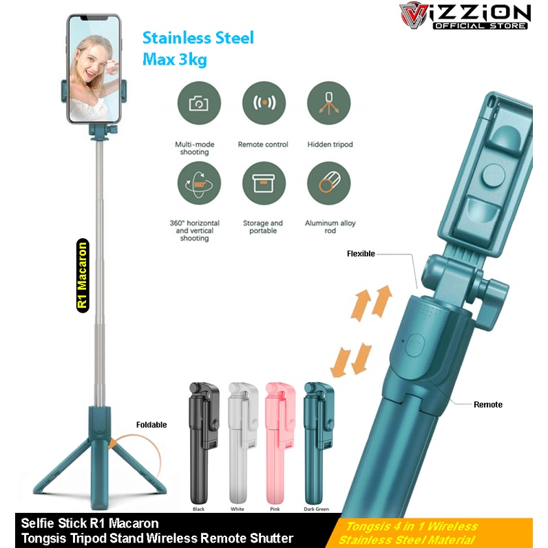Tongsis 4 In 1 VIZZION Experia R1 Macaron Tripod Selfie Stick Remote