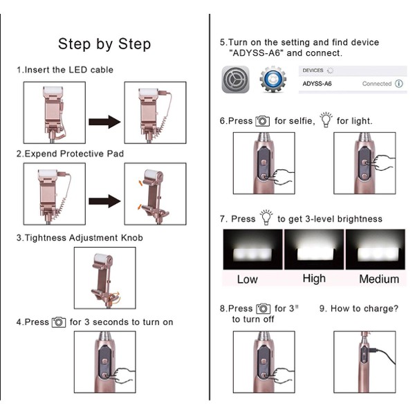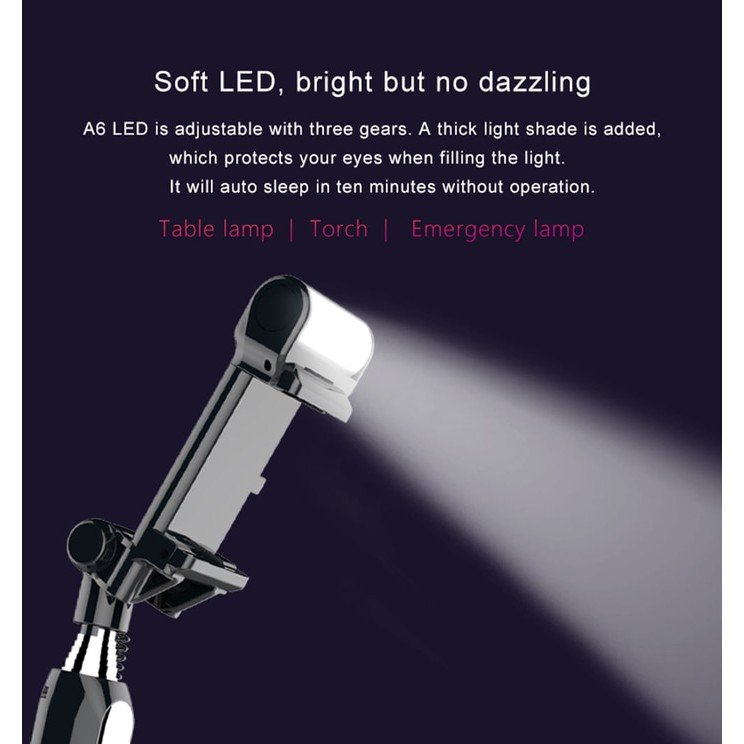 Tongsis Bluetooth Selfie Stick Led Fill Light Flash and Mirror kaca A6