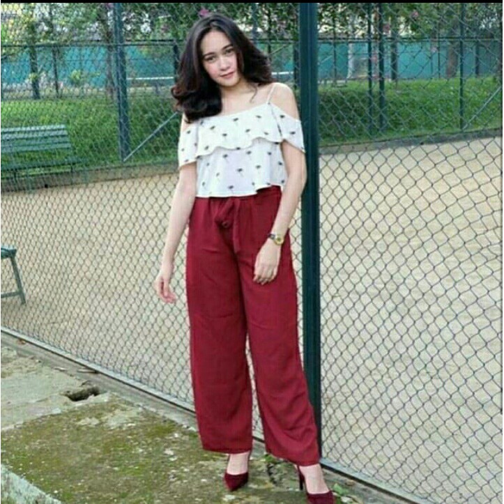 Torofashion88 ribbon kulot celana bahan twiscone ukuran L R