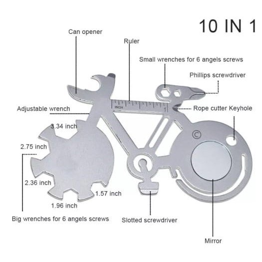 Tool 10 in 1 bentuk Sepeda - Untuk Kado, Souvenir, Kemping, Sepeda, Gantungan Kunci, dll.