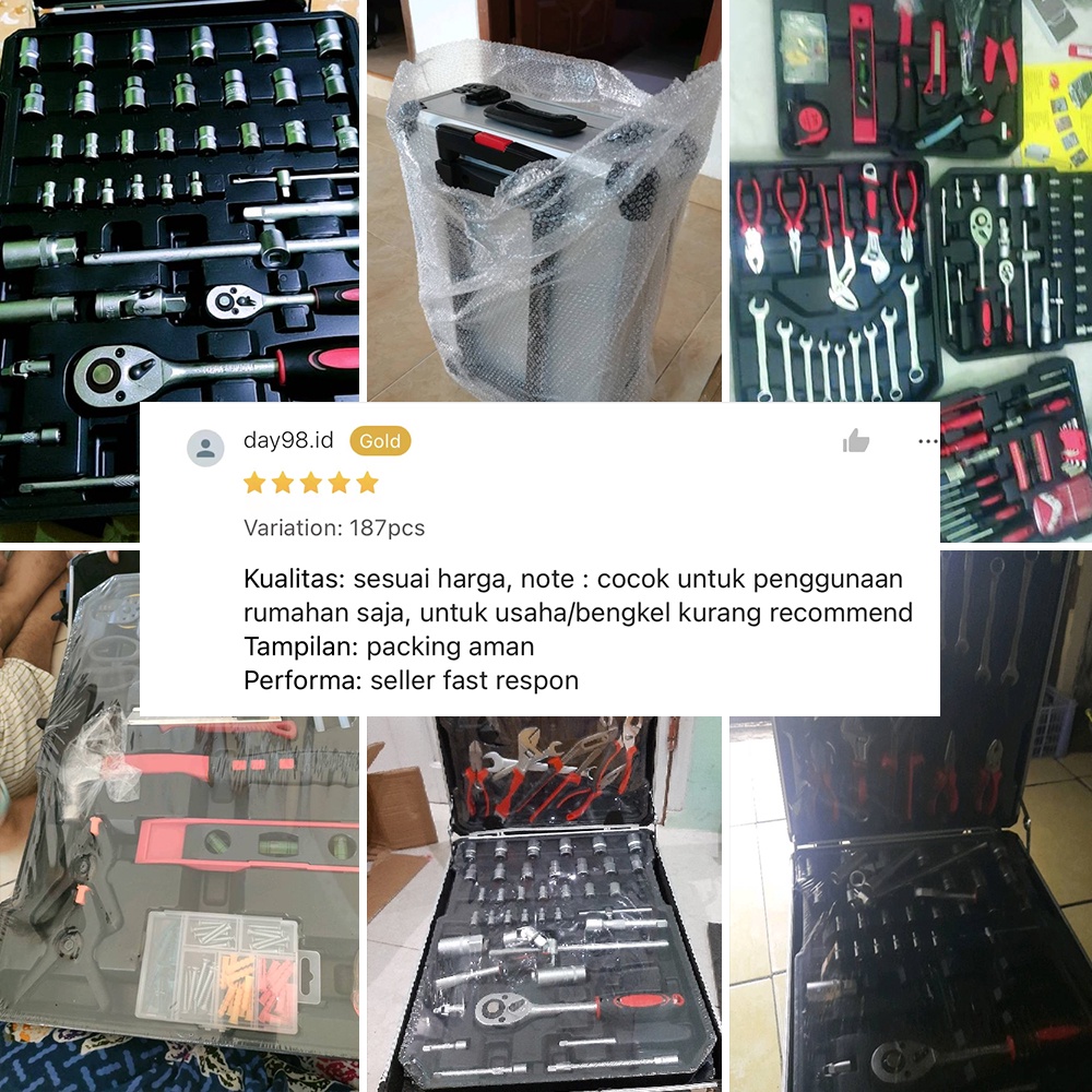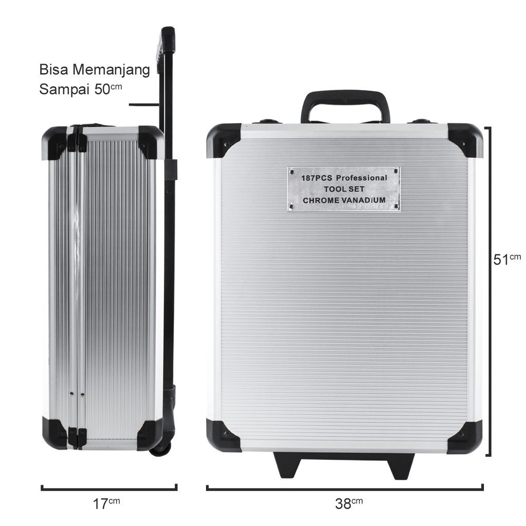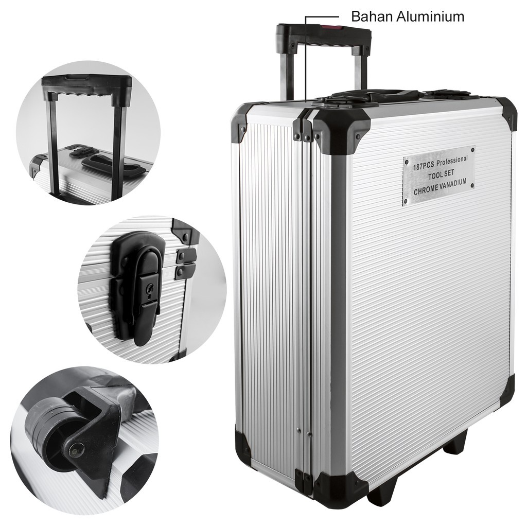 Tool Kit 187pcs Perkakas Bengkel Dan Rumah Koper Lengkap koper abu Free Koper 187/Alat Profesional