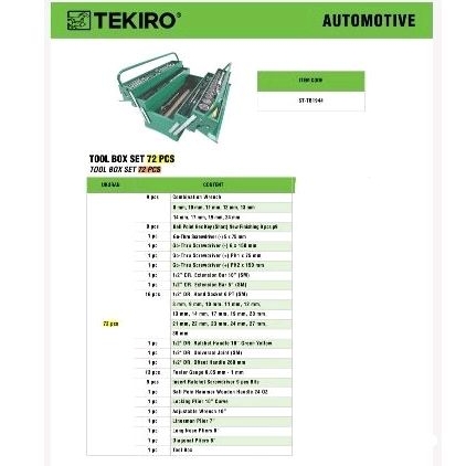 Tool box set 72 pcs tekiro/mechanic tools tekiro isi 72 pcs
