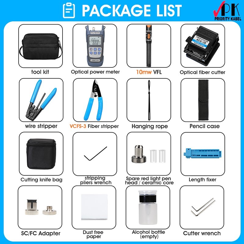 ToolSet Fiber Optic FO AUA-MC70 Fiber Tool Kit Alat Fiber Optik Alat Serat Optik Kit POWER Set Alat Tester Dan Pemotong Kabel Fiber Optik 10km Dengan Baterai Lithium