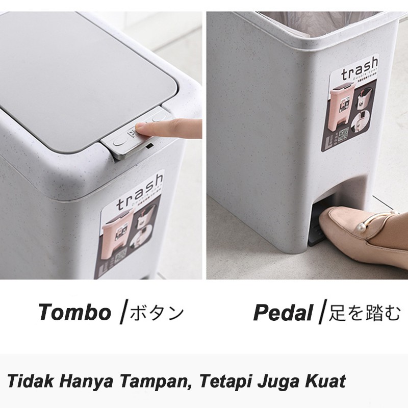 Top Living Tempat Sampah Tertutup Persegi Tombol Klik & Injak Tong Sampah Plastik Tempat Sampah Kamar Dapur Ruang Tamu 8 Liter 10 Liter Murah Bayar di tempat COD