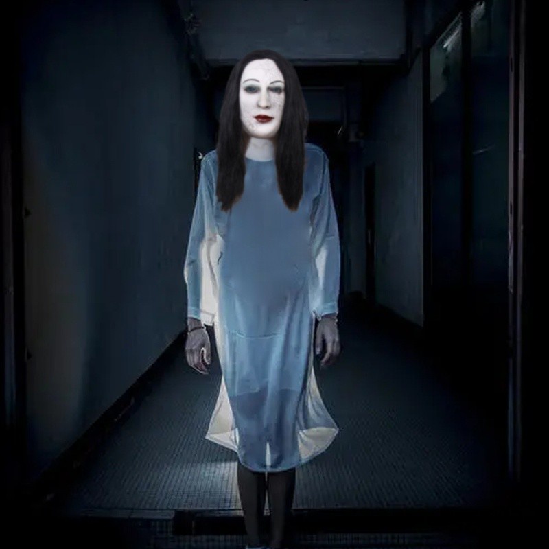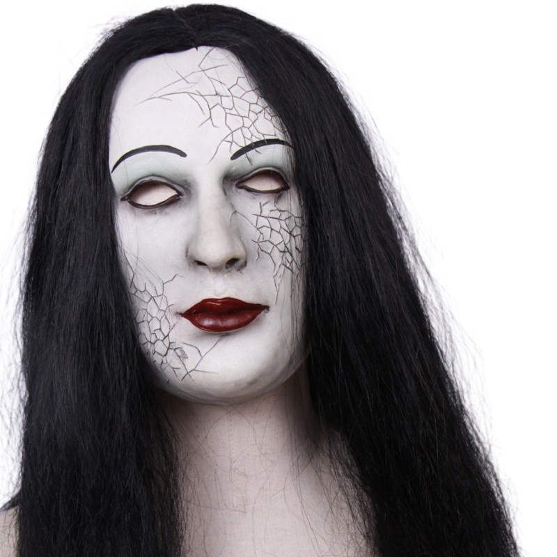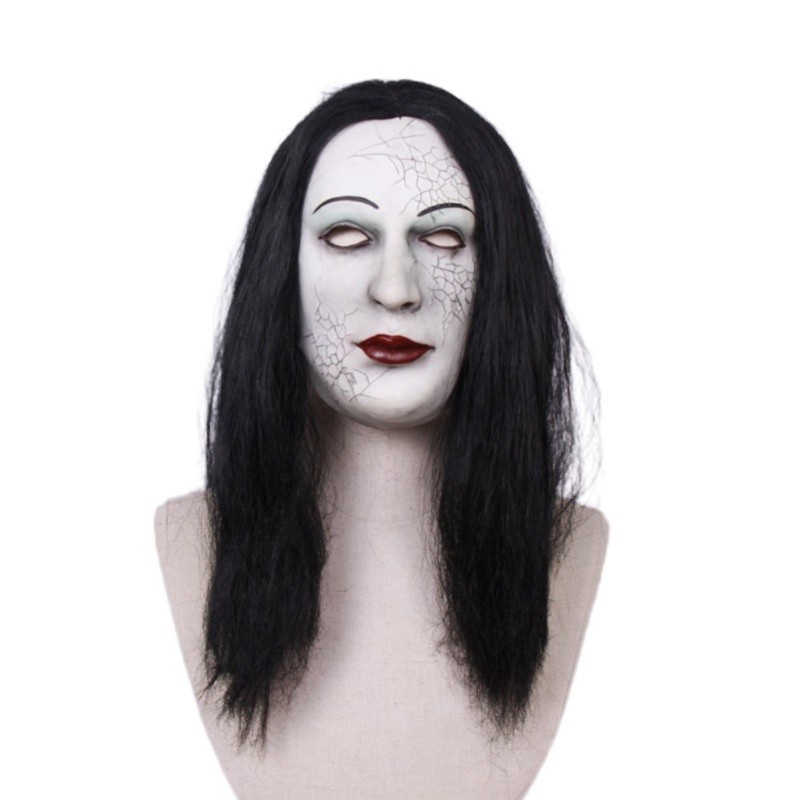 Topeng Hantu Wanita Rambut Panjang halloween latex