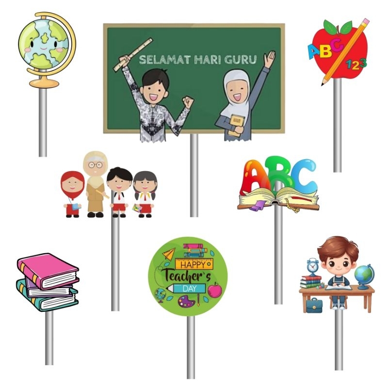 Toper hari guru / SELAMAT HARI GURU HAPPY TEACHER Hiasan kue tusuk Decorasi kue murah