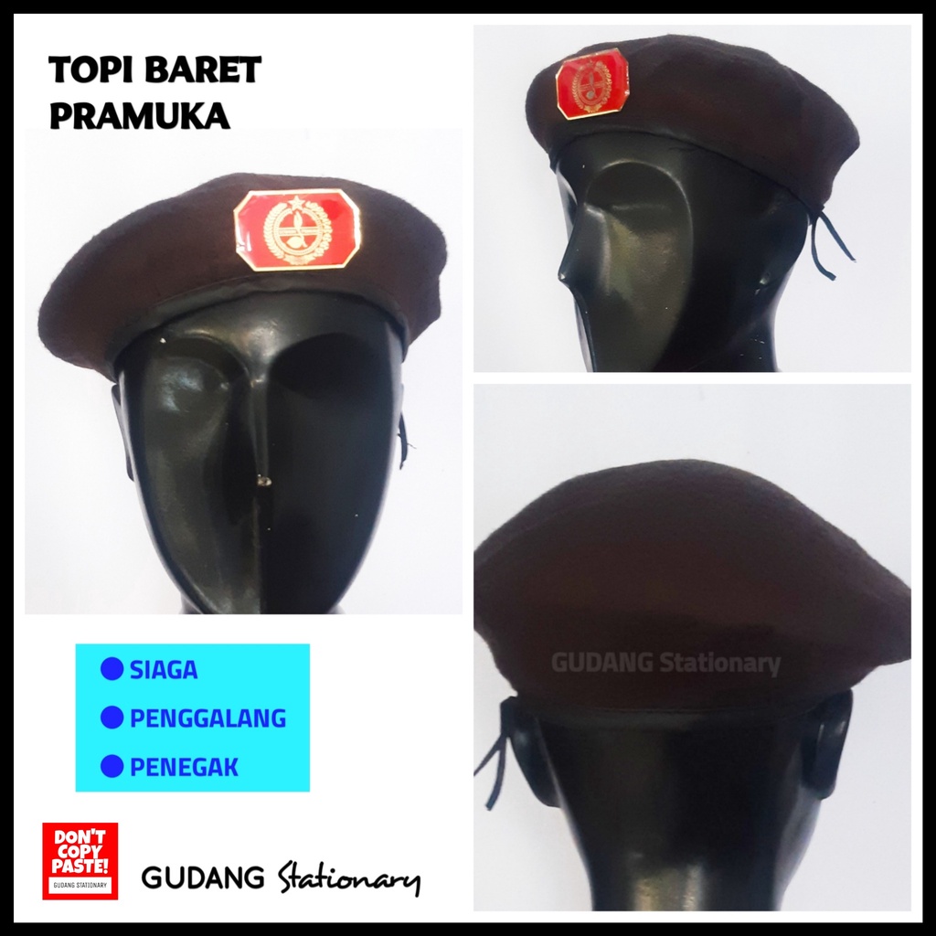 Topi Baret Pramuka Putra + Pin Tanda Topi | Atribut Perlengkapan Pramuka