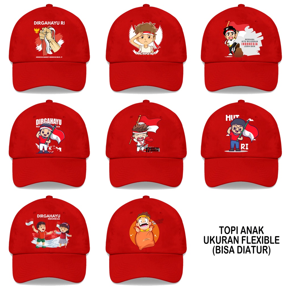 Topi Baseball Anak Couple 17 Agustus Kemerdekaan Indonesia topi Agustusan topi murah Indonesia Merdeka Anak Laki-laki & Perempuan Dirgahayu Hari Kemerdekaan Independence Day Kaos Polos Senja