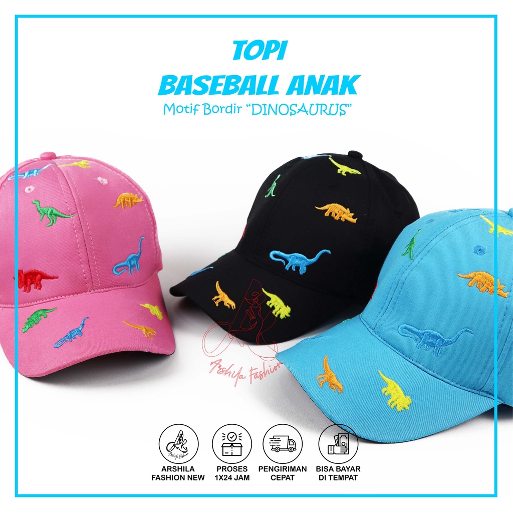 Topi Baseball Anak Laki Laki Perempuan Full Bordir Dino Banyak