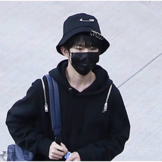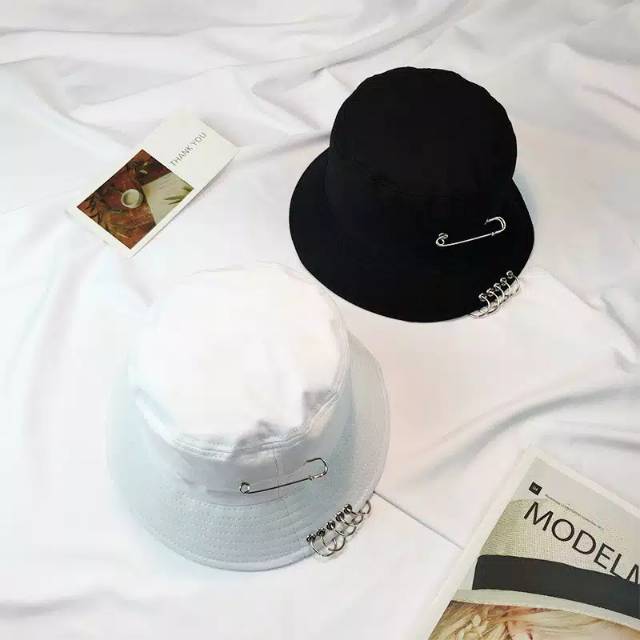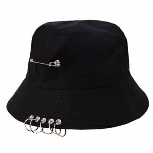Topi Bucket Hat Kpop Style Aksen 5 Ring Peniti Import