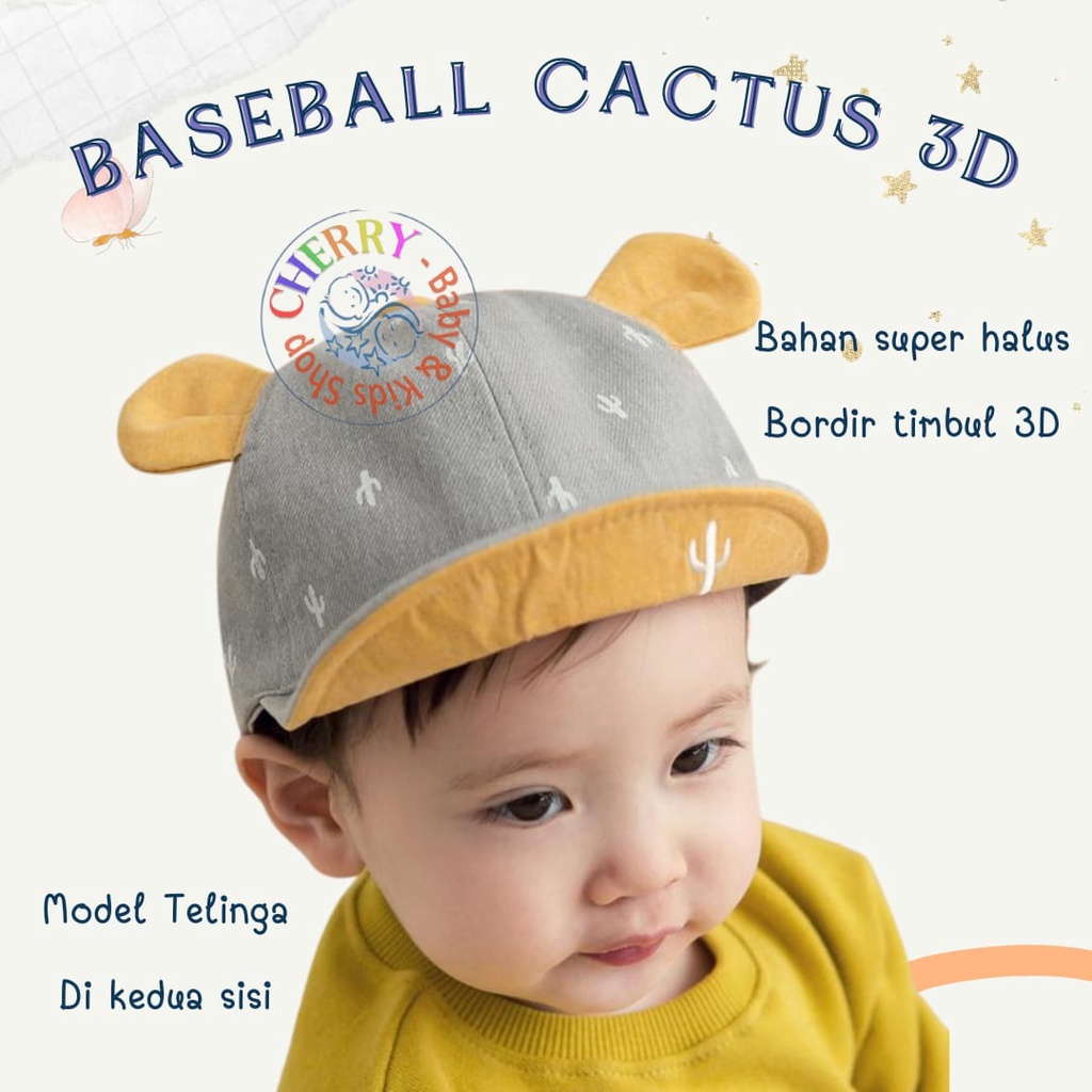 Topi Cactus Model baseball 1 - 4 Tahun motif bordir kaktus warna abu kuning Topi Bayi High Quality CBKS VC