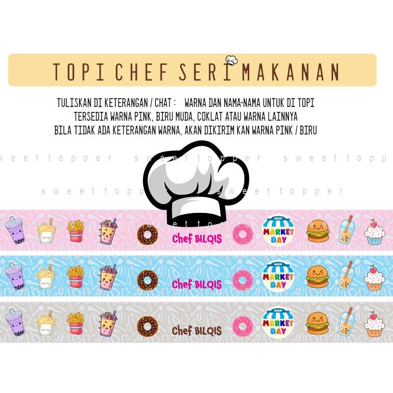 Topi Chef anak market day topi koki penutup kepala masak celemek CHEF MENU STANDING