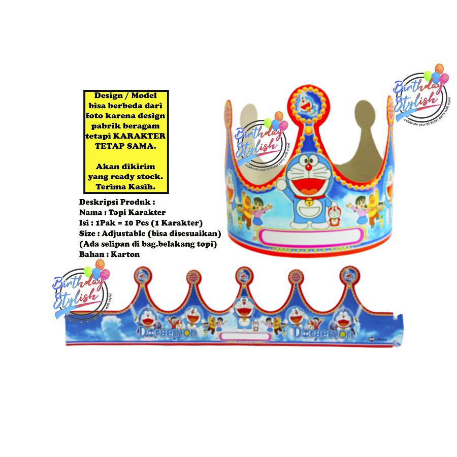 Topi Doraemon Karton Mahkota/ Topi Mahkota Doraemon/ Topi Karakter Doraemon isi 10 Pcs