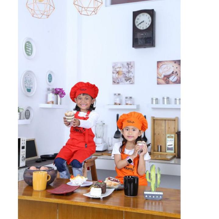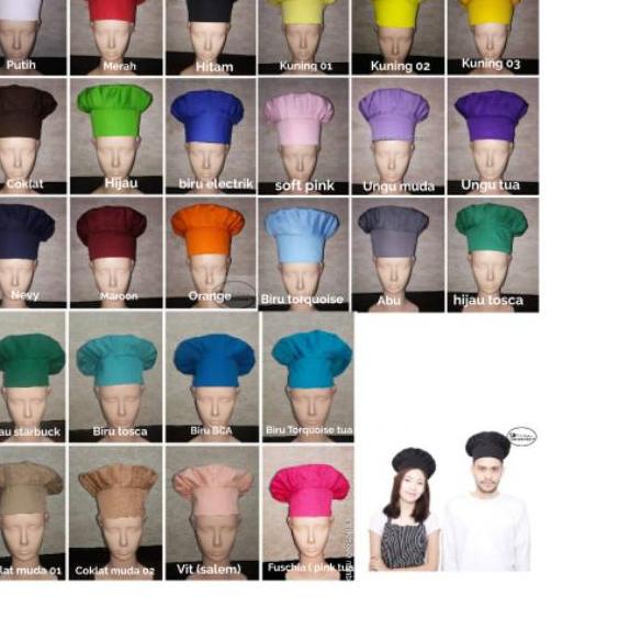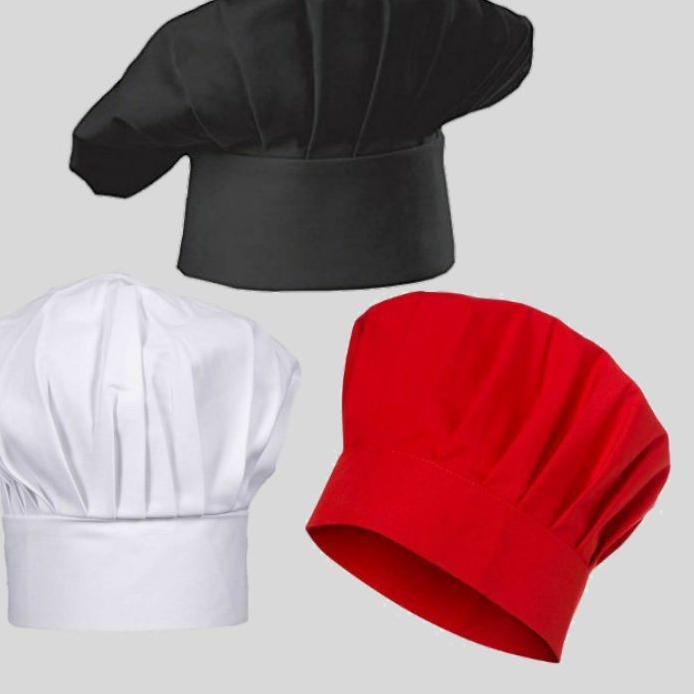 Topi Koki Topi Chef Hat Chef Profesional Dewasa dan anak - Hitam Merah Putih ( Tersedia 26 varian warna )