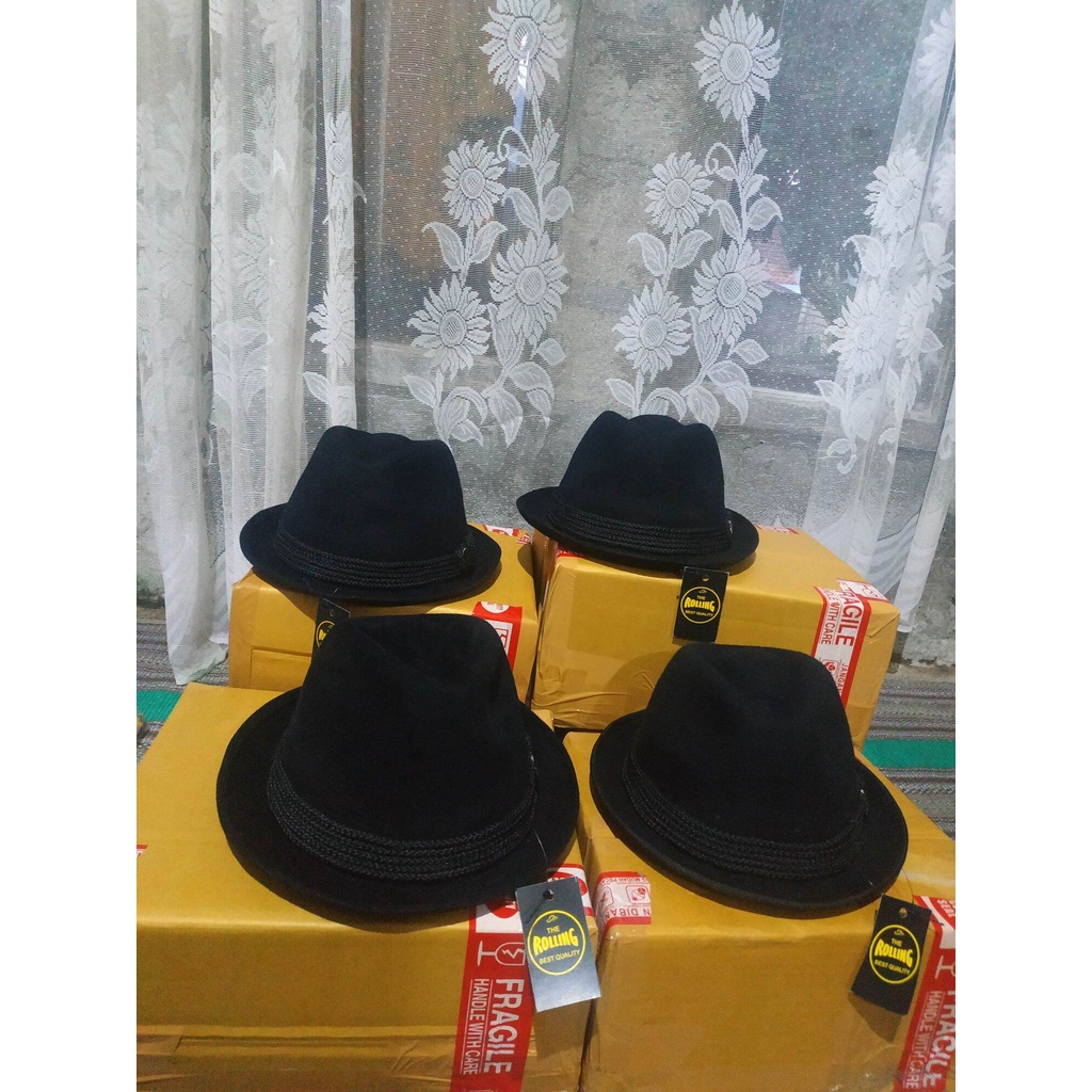 Topi Laken Hitam Polos Bahan Kulit Sapi Import Topi Pria Original Topi Laken Original Import