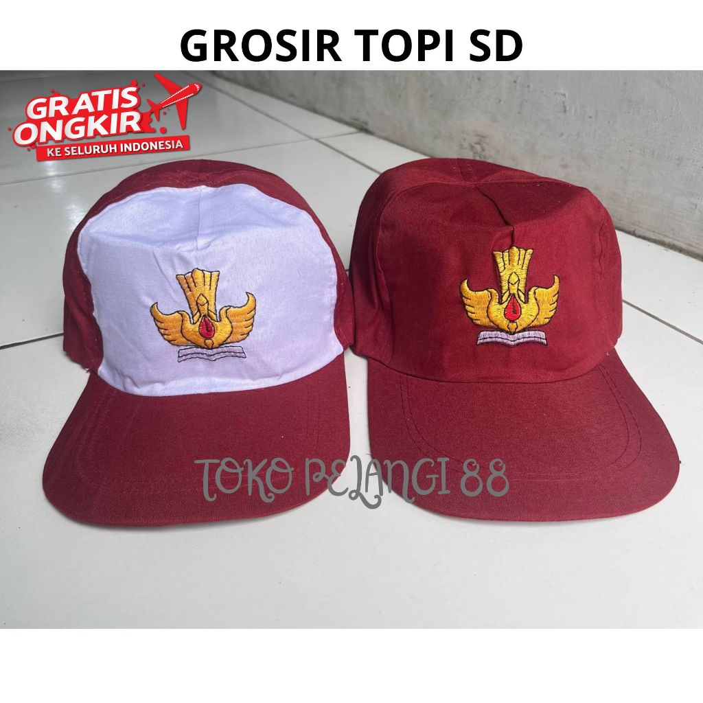 Topi SD Merah Polos dan Merah Putih 20biji
