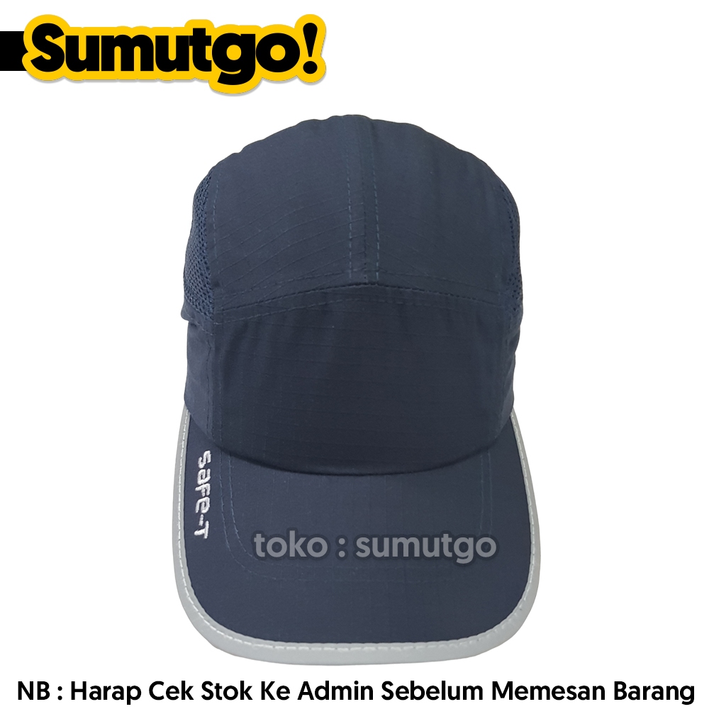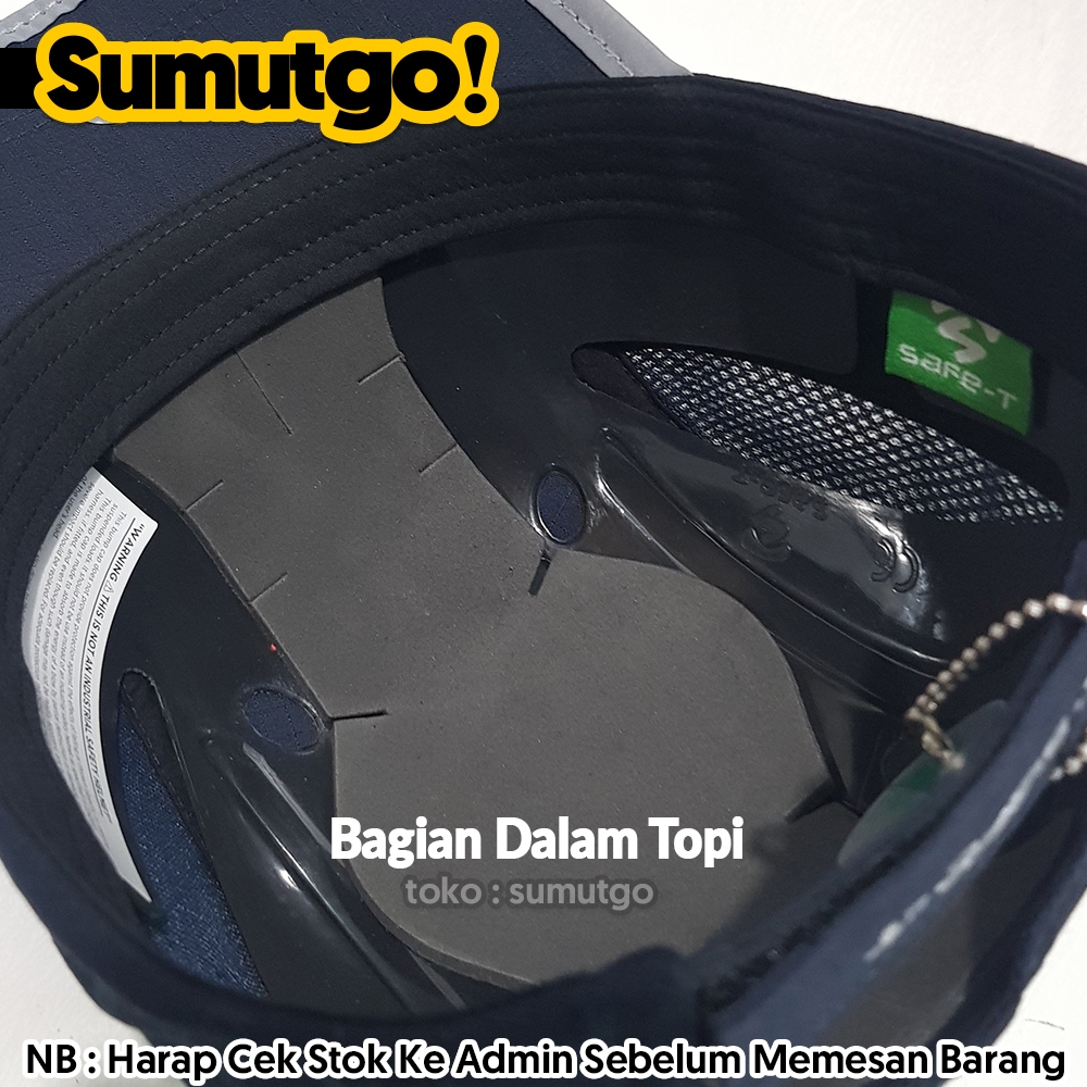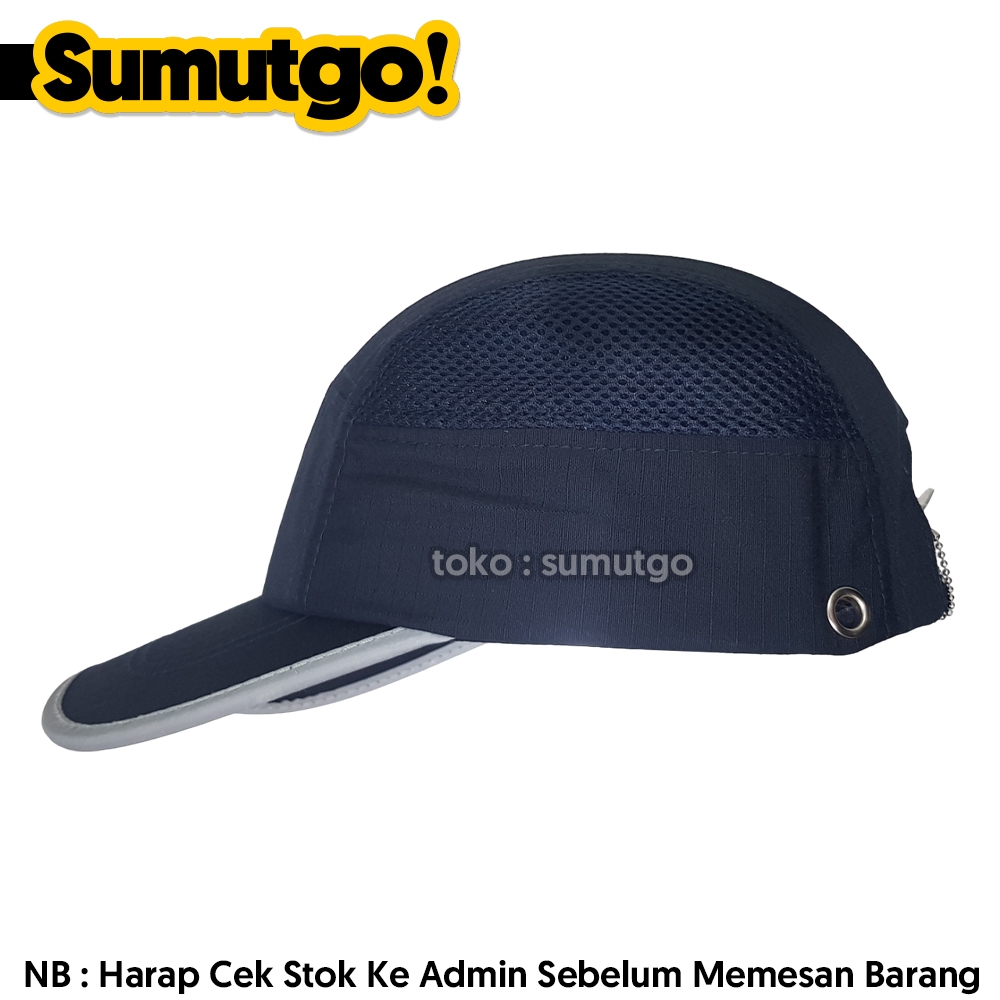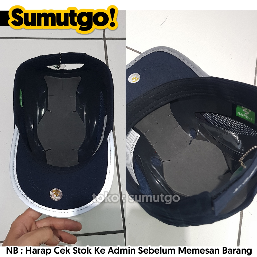 Topi Safety Proyek Warna Biru Dongker dengan Batok Busa Pelindung + ikat Perekat + Scothlite / Bump Cap K3 Safe-T Working Bump Cap Baseball Cap Navy Blue / Topi Pelindung Kepala warna Biru Donker Gelap dengan Kain Scotlite