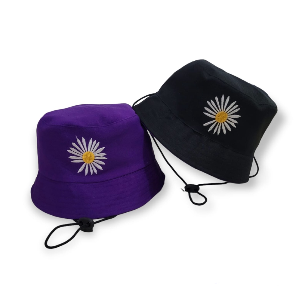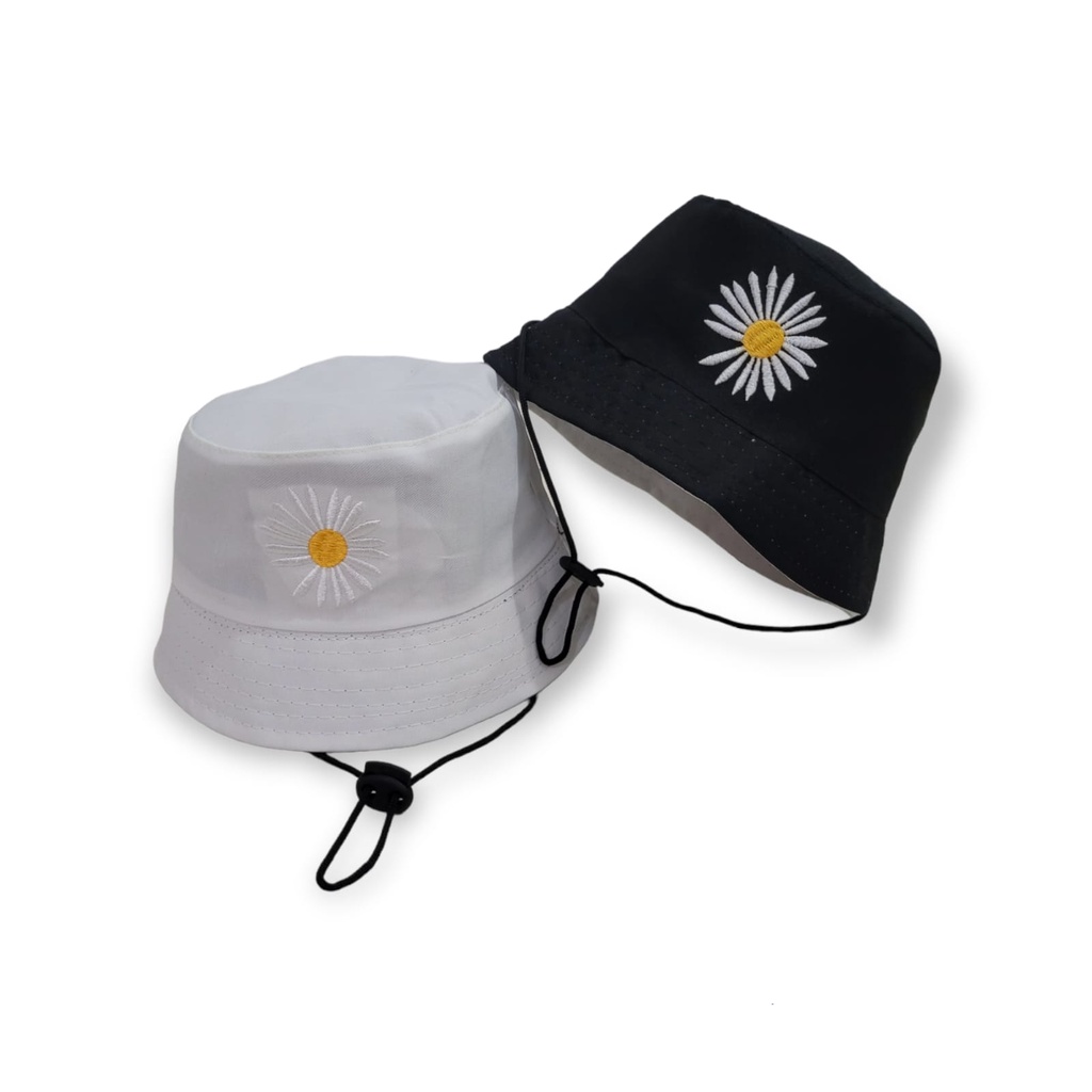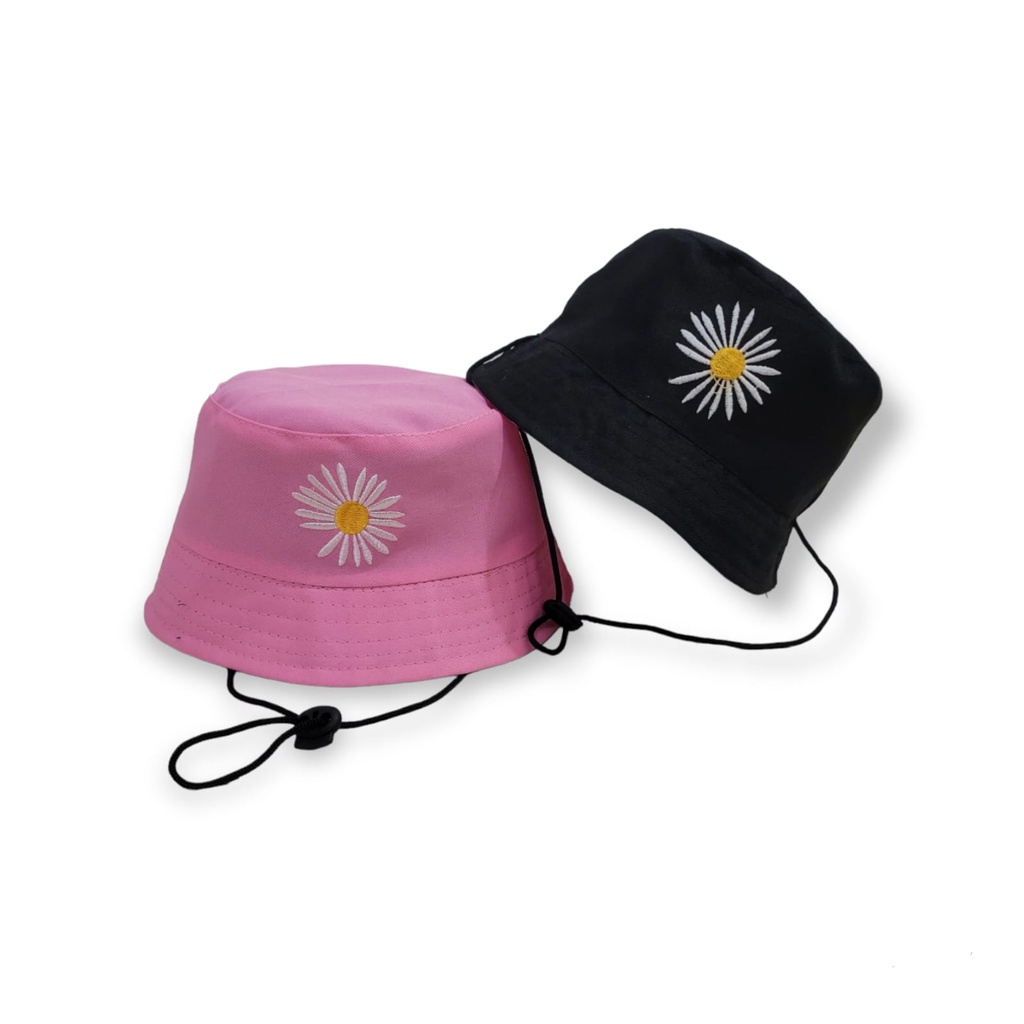 Topi anak bordir bunga daisy ada Talinya Topi bucket anak bulak balik Topi anak