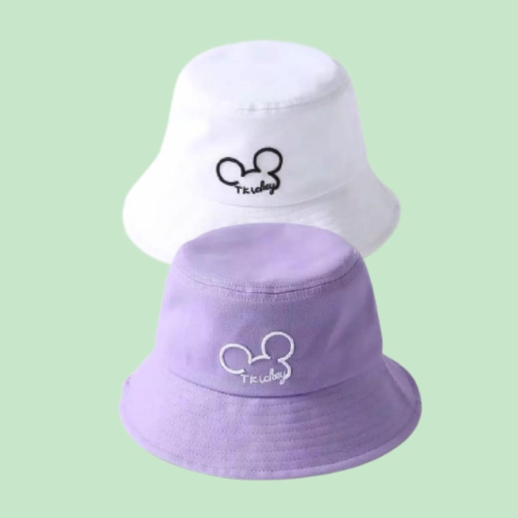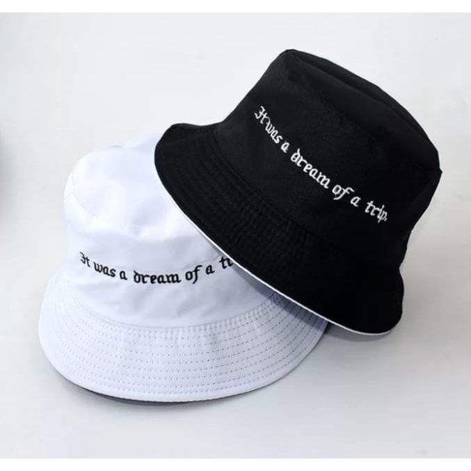 Topi bucket hat bolak balik dengan variasi bordil bolak balik 2 sisi luar dalam 100% premium