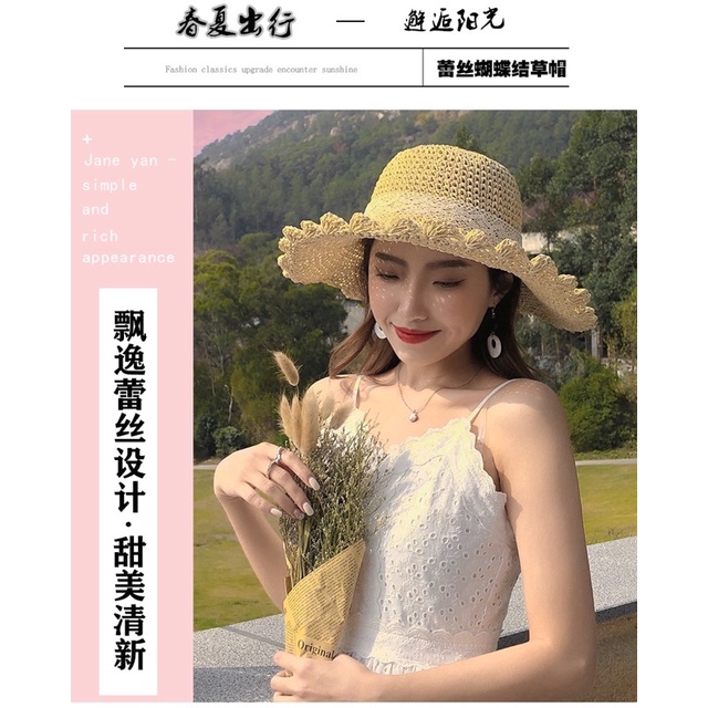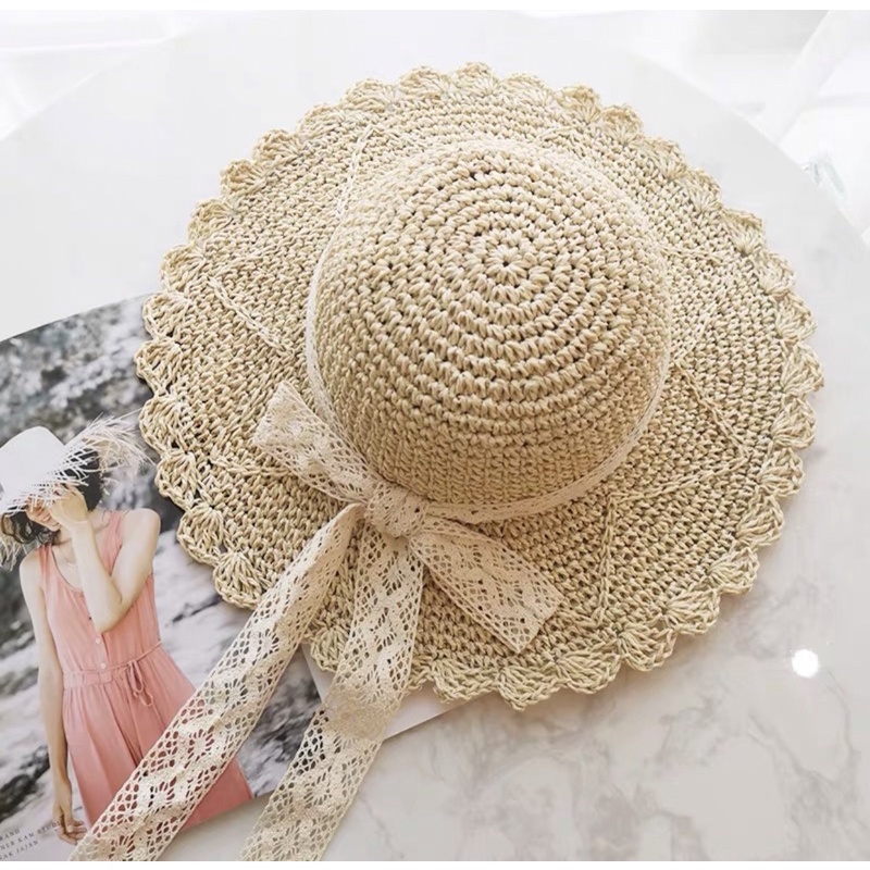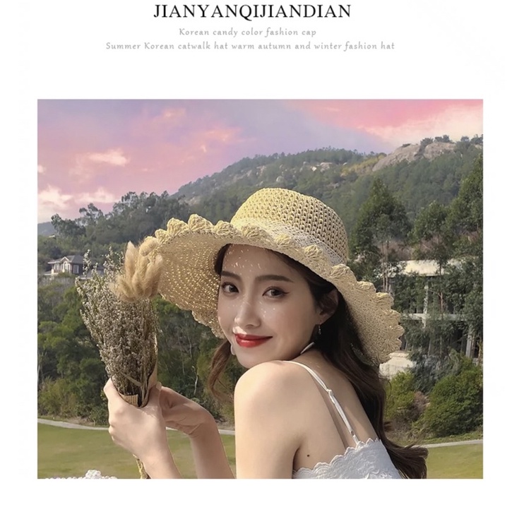 Topi pantai lipat topi matahari liburan wanita topi jerami tipis bernapas