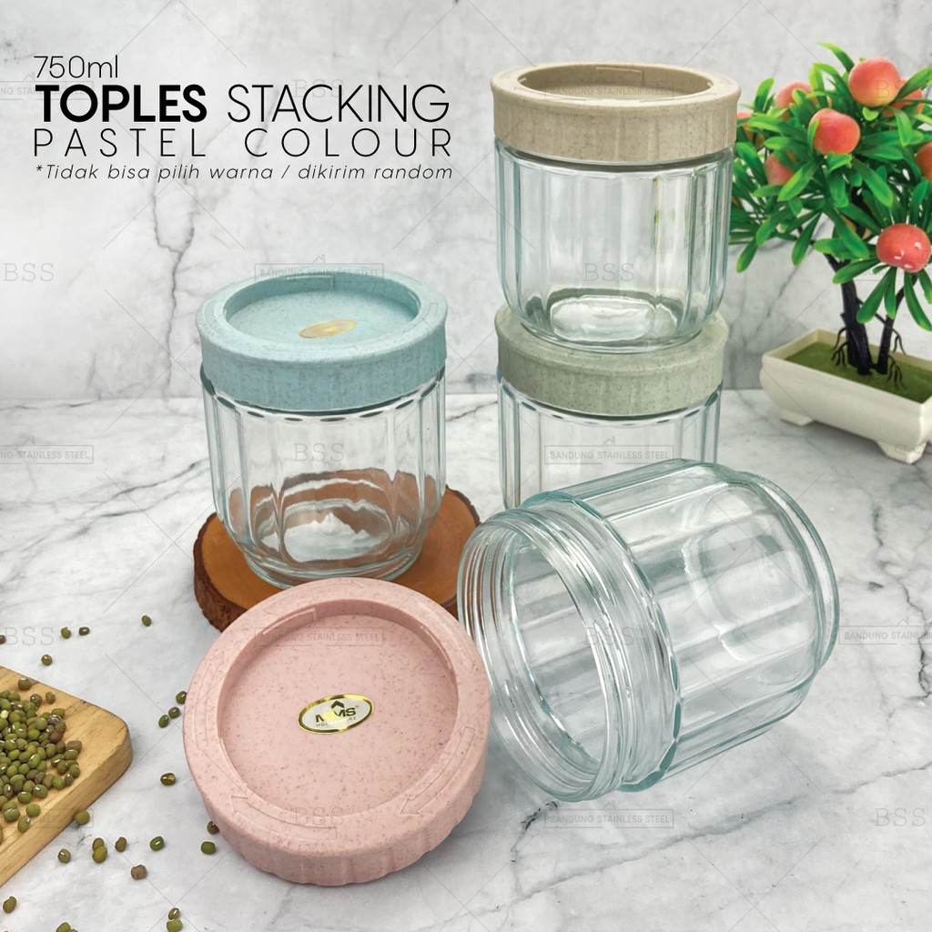 Toples Keler Kaca 750ml Tutup Warna Tempat Wadah Cemilan Kue Kering Lebaran Lucu Menarik Jual Random