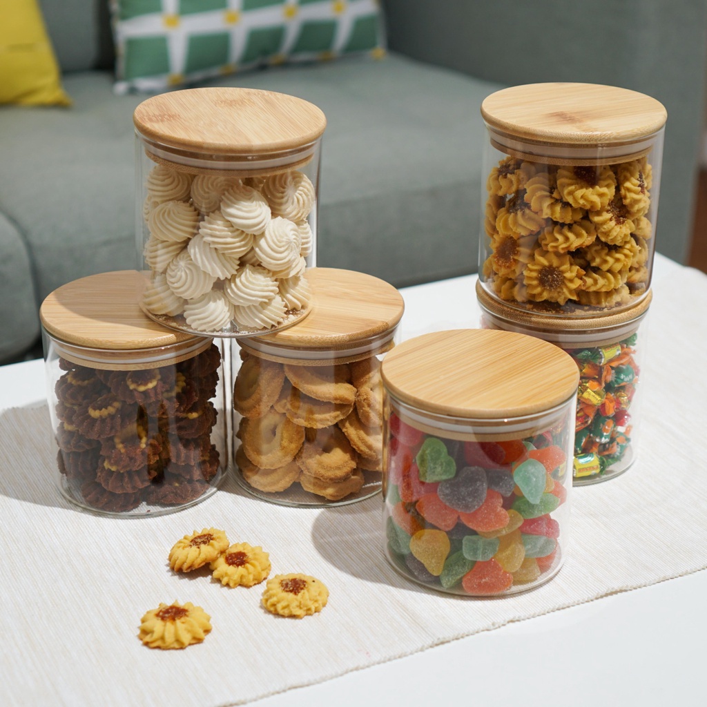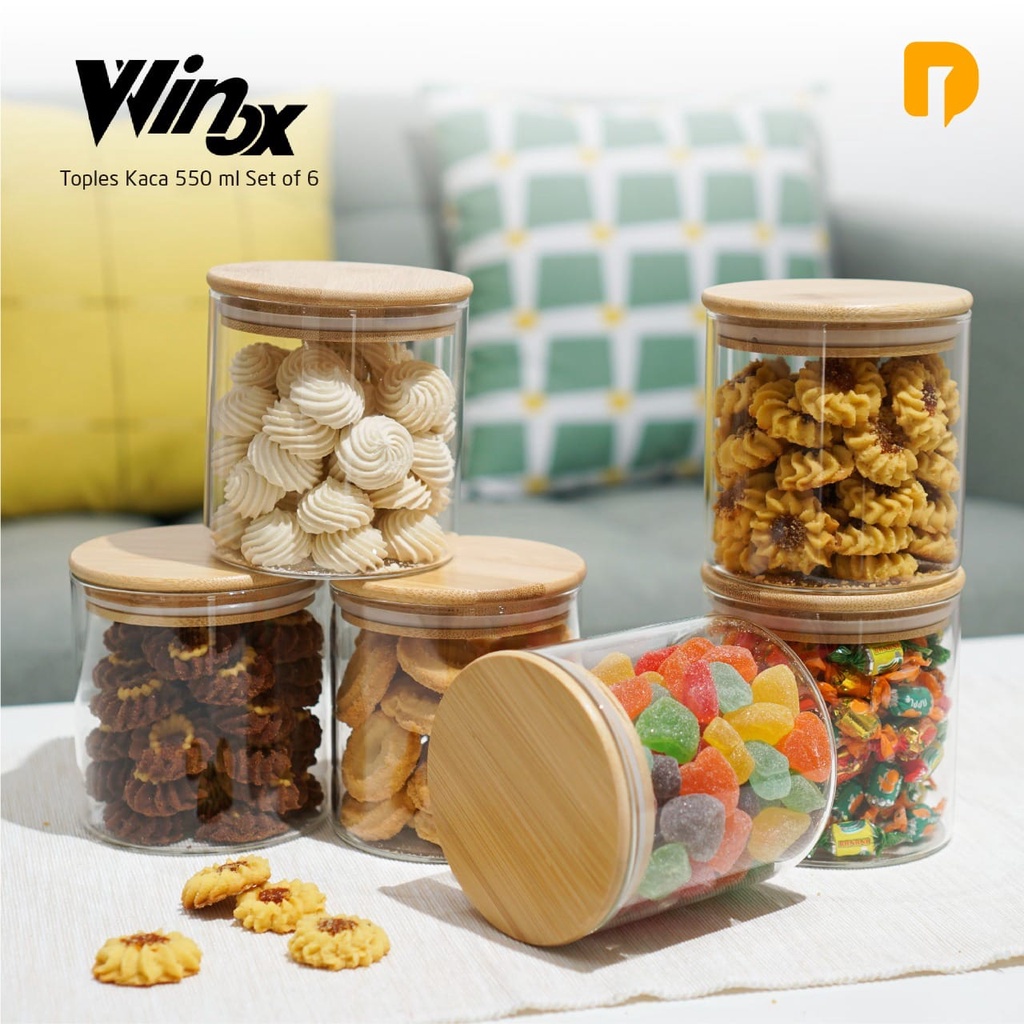 Toples Kue Kering Lebaran Kaca Bening Cantik Minimalis 550 950ML Winox