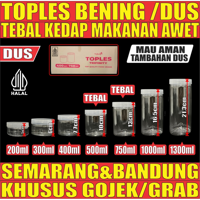 Toples Tebal 60gr 200ml 300ml 400ml 500ml 750ml 1000ml 1300ml n Seal Dus Plastik Jar Bening Pet GJK
