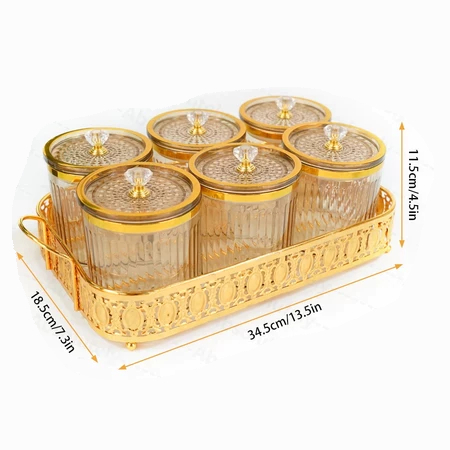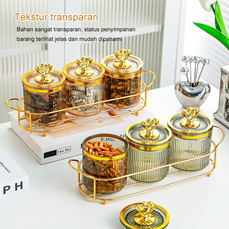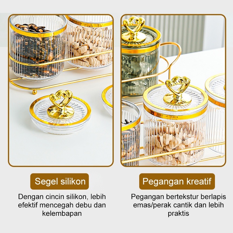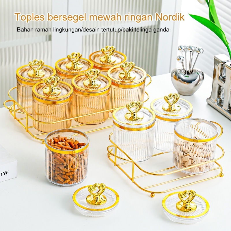Toples Set Nampan Mewah Tangki Segel Plastik Guci Makanan Kotak Penyimpanan Dapur Set Tangki Penyimpanan Toples Kue Kering Estetik 1 Set Toples Lebaran Toples Gold Toples 1 Set Mewah Toples Akrilik Set Nampan