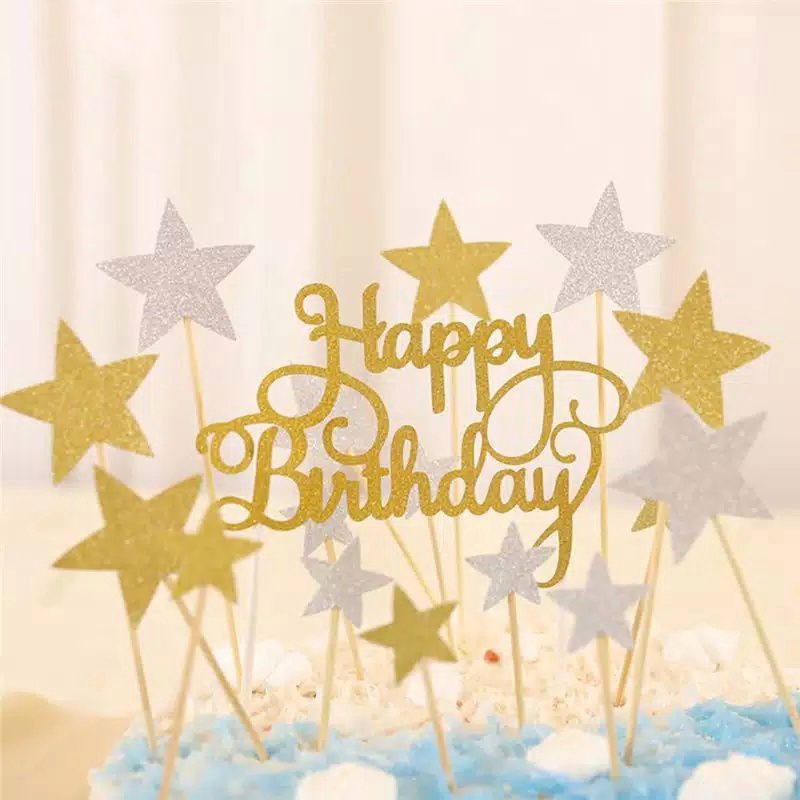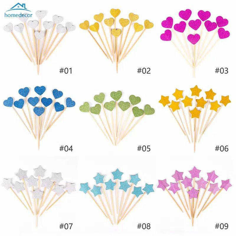 Topper Bintang Topper Hati Bahan Kertas Glitter 1 Pcs