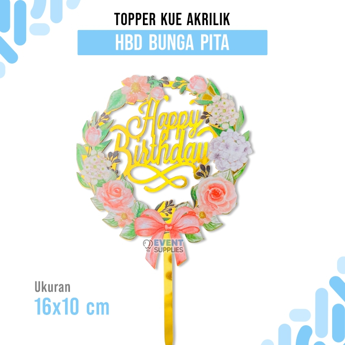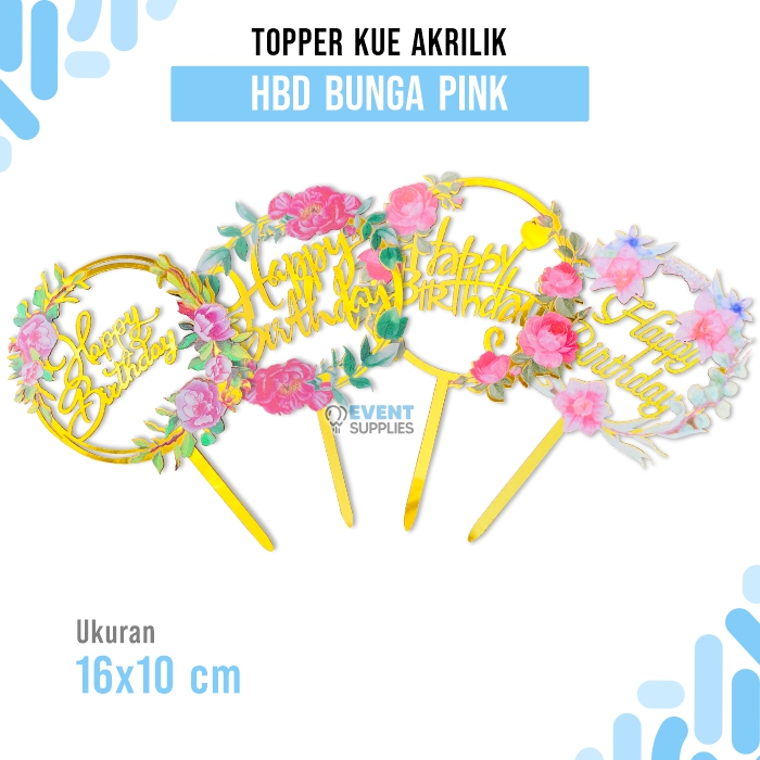 Topper Bunga Akrilik / Topper Kue Bunga Flowers Hiasan Cake Ulang Tahun