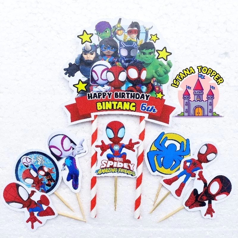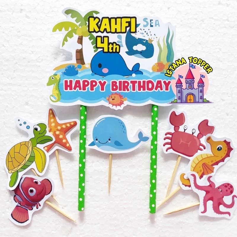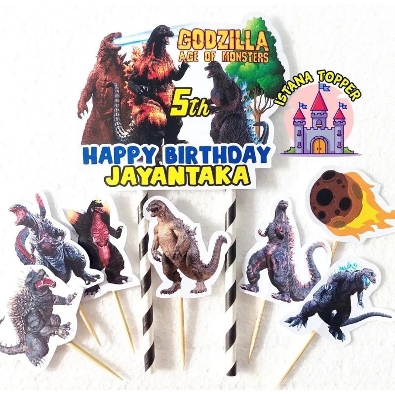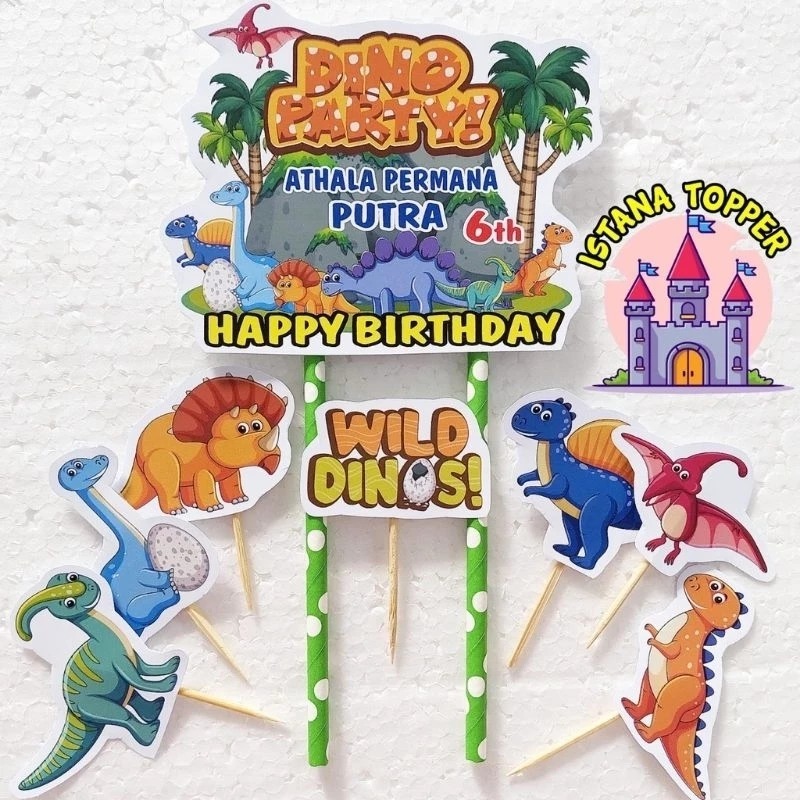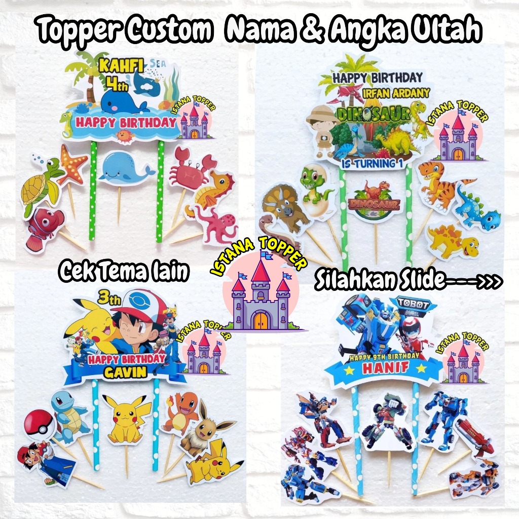 Topper CUSTOM NAMA Tema Dino, Plant Zombie2, Godzila, Pokemon, Spidey Amazing Friends, Animal Laut, Tobot, / Topper Ultah