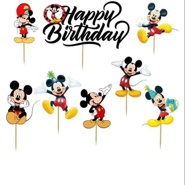 Topper Cake/Cupcake, Hiasan Kue Ulang Tahun, Motif Mickey Mouse