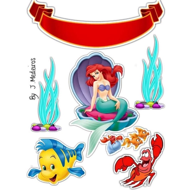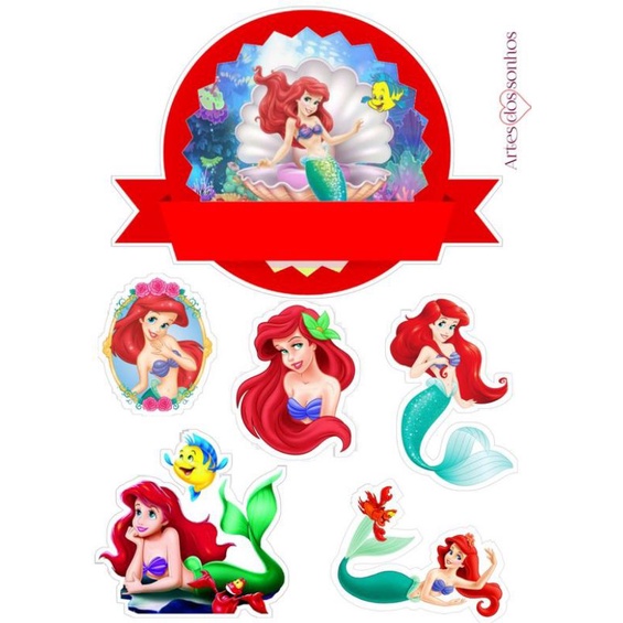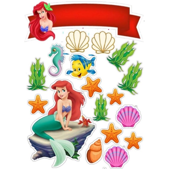 Topper Cake Custom Nama Tema Mermaid Ariel baner kue ultah Fadhilsouvenir