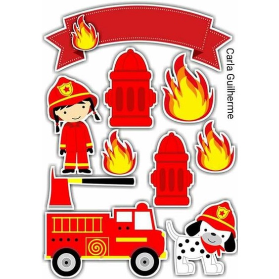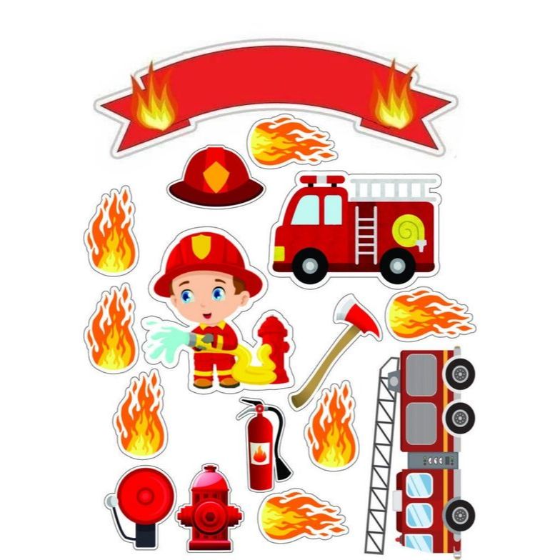 Topper Cake Custom Ucapan Nama tema Pemadam Kebakaran / damkar