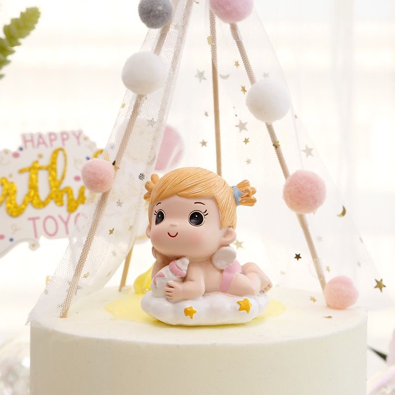 Topper Cake Cute Figure Baby Boy / Baby Girl High Quality / Hiasan Kue Bayi Laki Laki Bayi Perempuan Lucu Resin / Dekorasi Tema 1 Month Baby / Baby Shower
