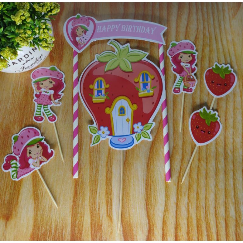 Topper Cake Strowberry Ulang Tahun Hiasan Kue Ulang tahun Birthday cake Dekorasi Termurah