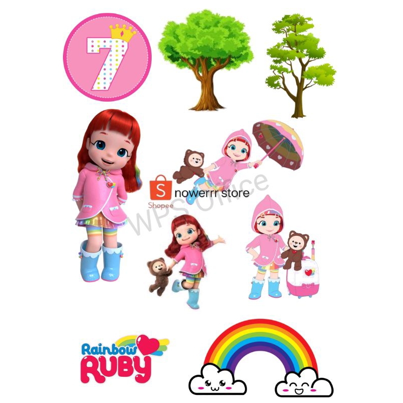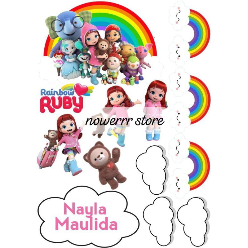 RAINBOW RUBY/ Topper Cake Tema RAINBOW RUBY Custom nama/Hiasan Cake ULTAH Ruby Rainbow