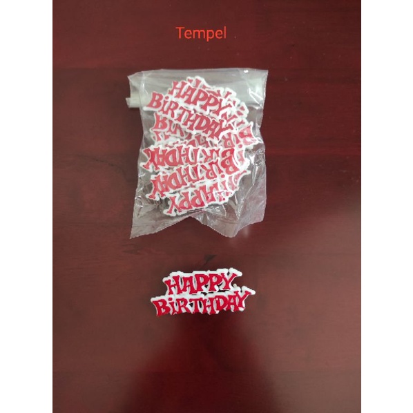 Topper Happy Birthday Merah Tusuk/Tempel Lusinan