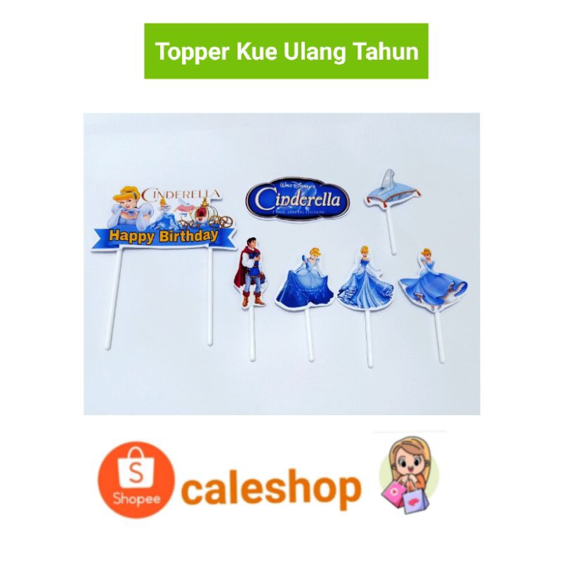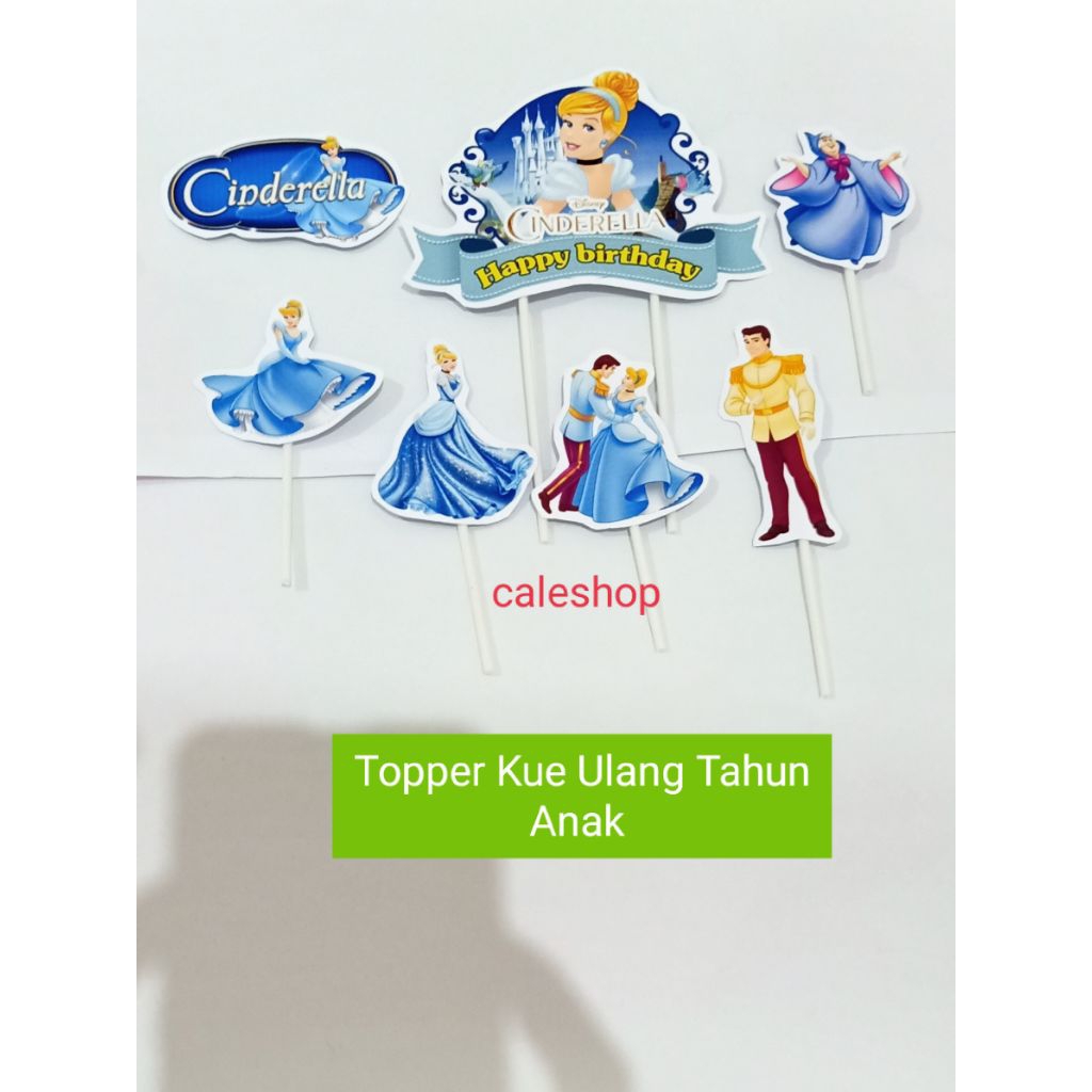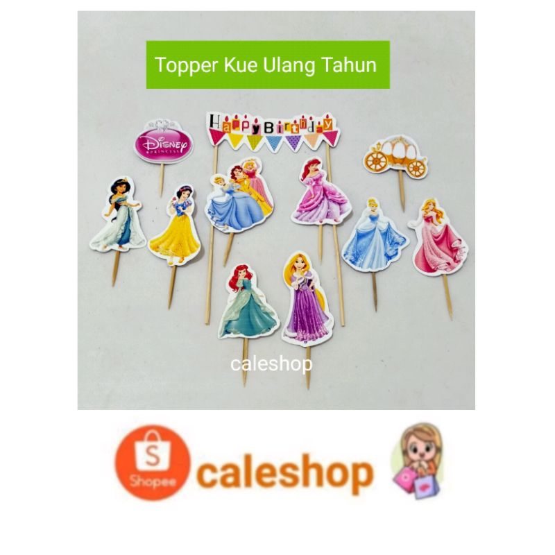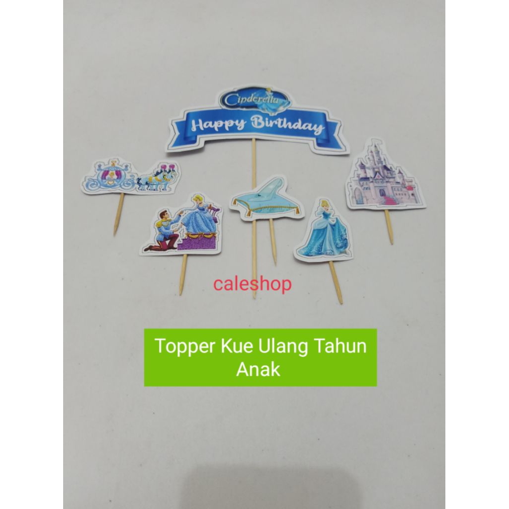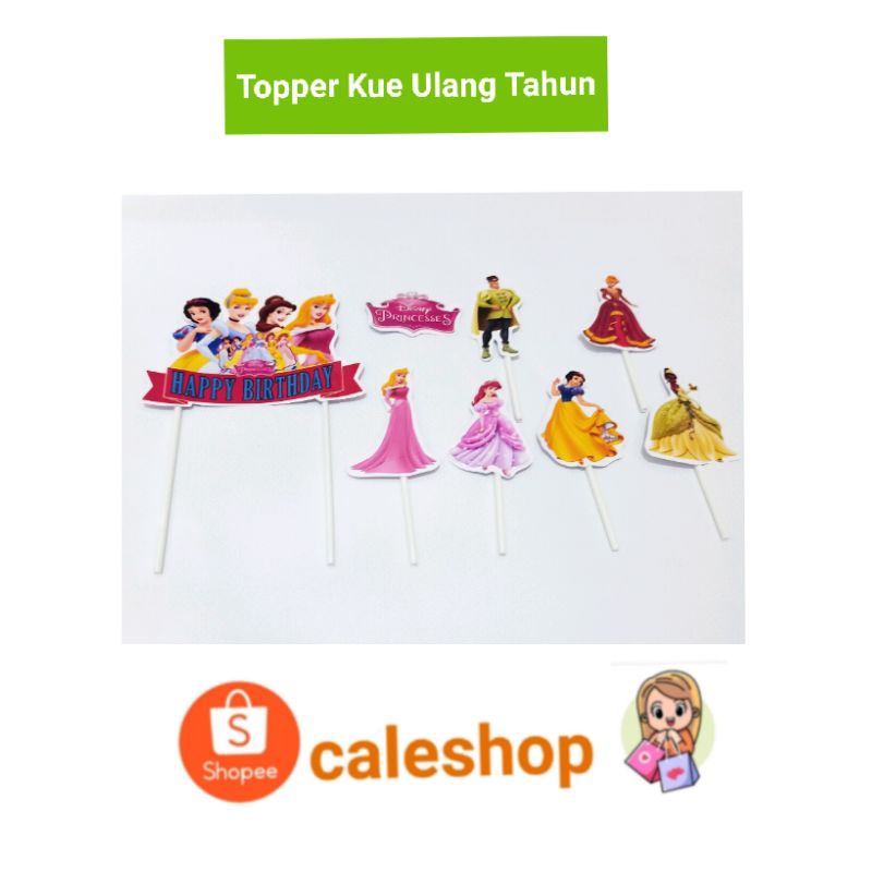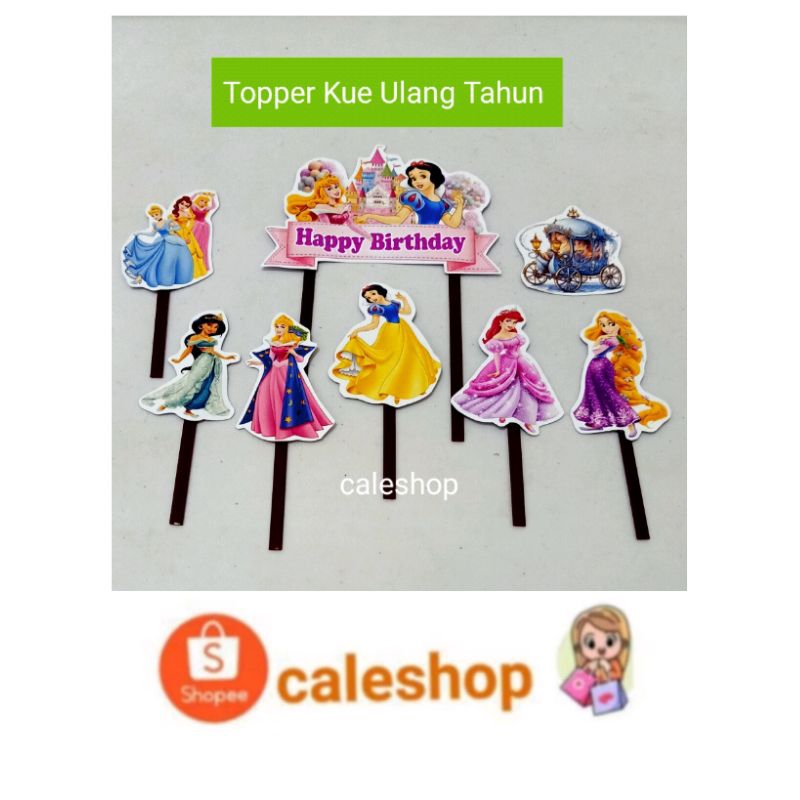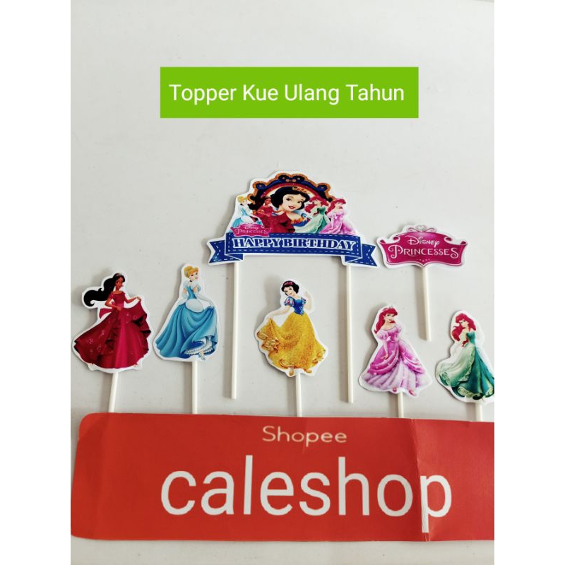Caleshop Topper Kertas Kue Ulang Tahun Anak Princess Sofia Cinderella Frozen Elsa Rapunzel Putri salju dan Alice Aladin Jasmine