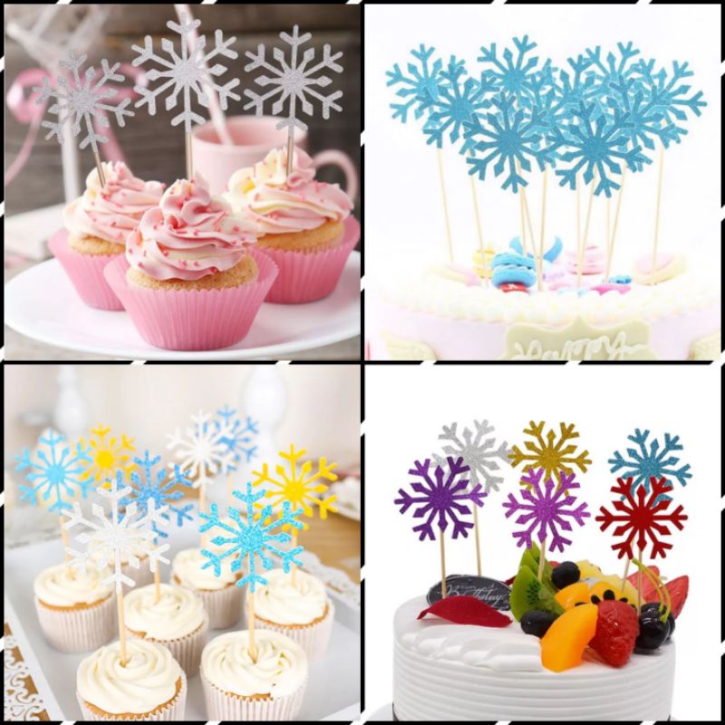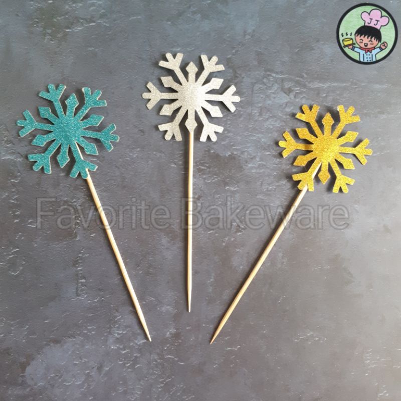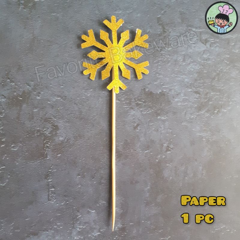 Topper Kue Birthday Snowflake Paper Glitter Frozen Hiasan Cup Cake Tart Natal Salju Kertas