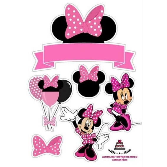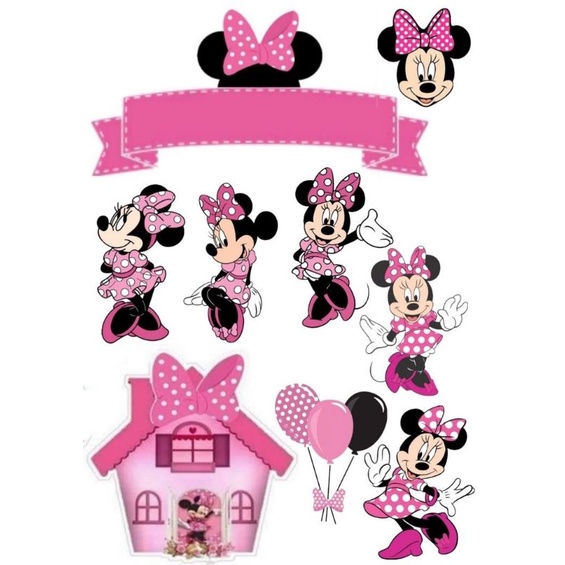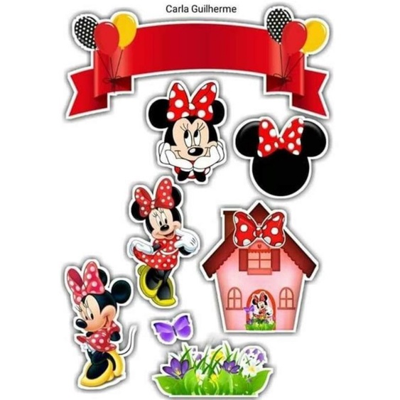 Topper Mickey Minnie Mouse Red Pink custom nama birthday cake