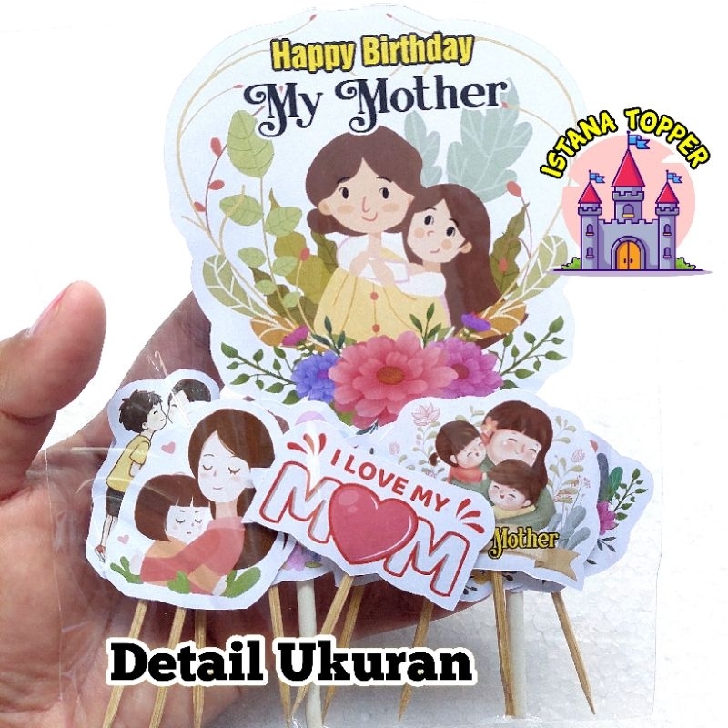 Topper New Set Isi 10 Happy Birthday Ibu / Topper Ultah Topper Cake