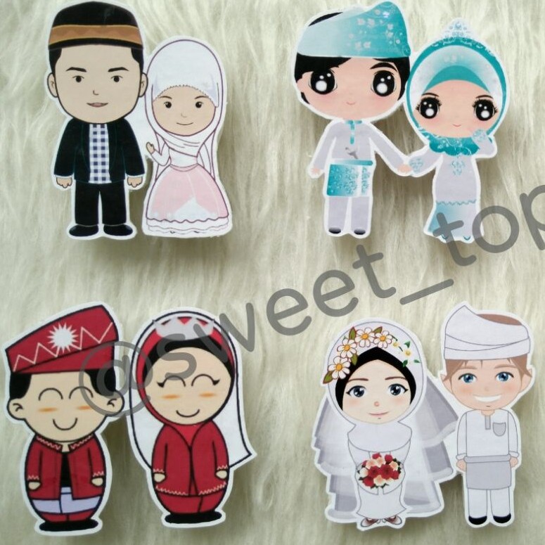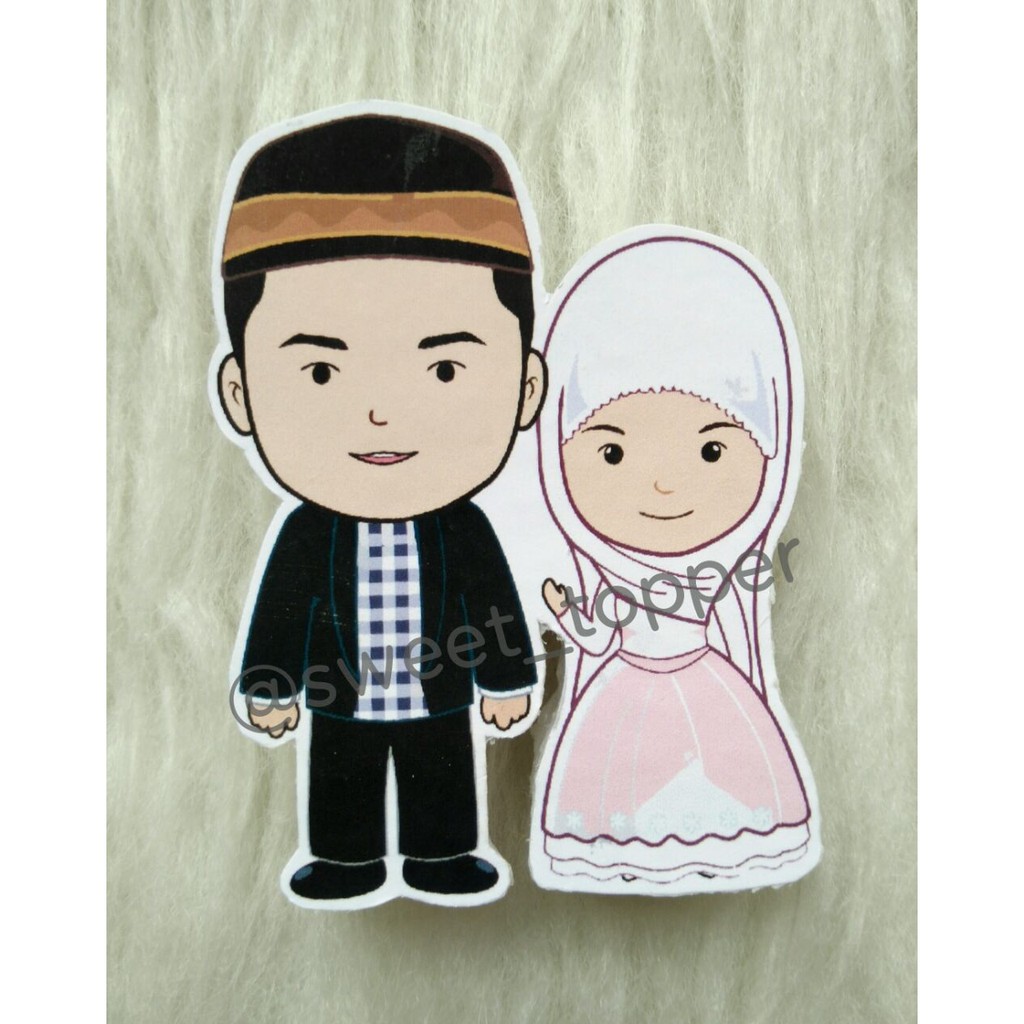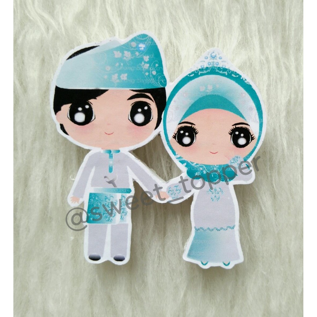 Topper Pengantin Hijab utk dekorasi kue pengantin, puding, tumpeng dll