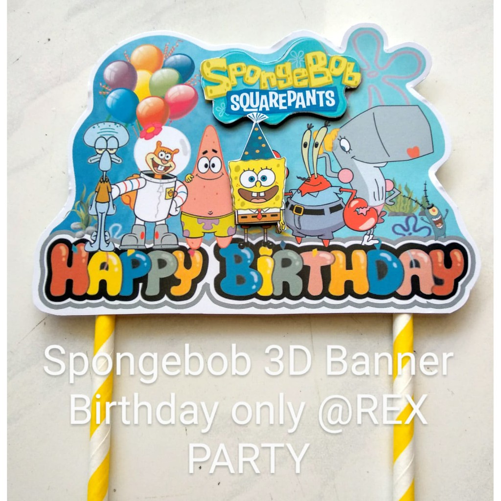 Topper SpongeBob/Cake Topper/Topper Banner SpongeBob/Topper Kue Ultah