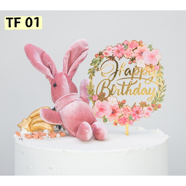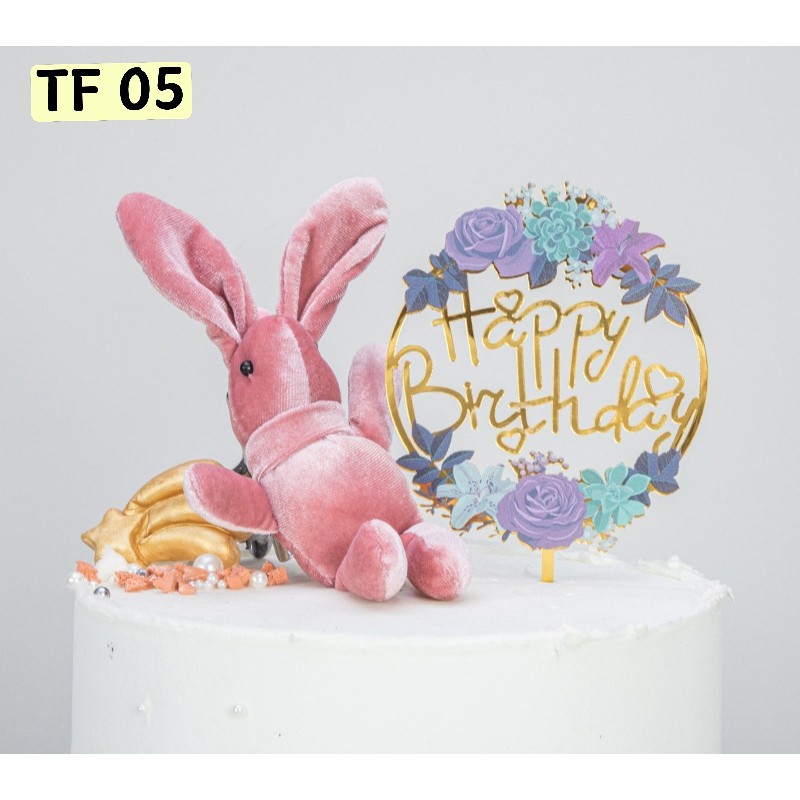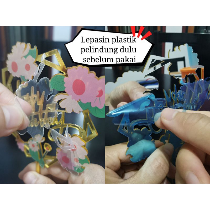 Topper cake - topper kue - toper cake bunga " Happy birthday "